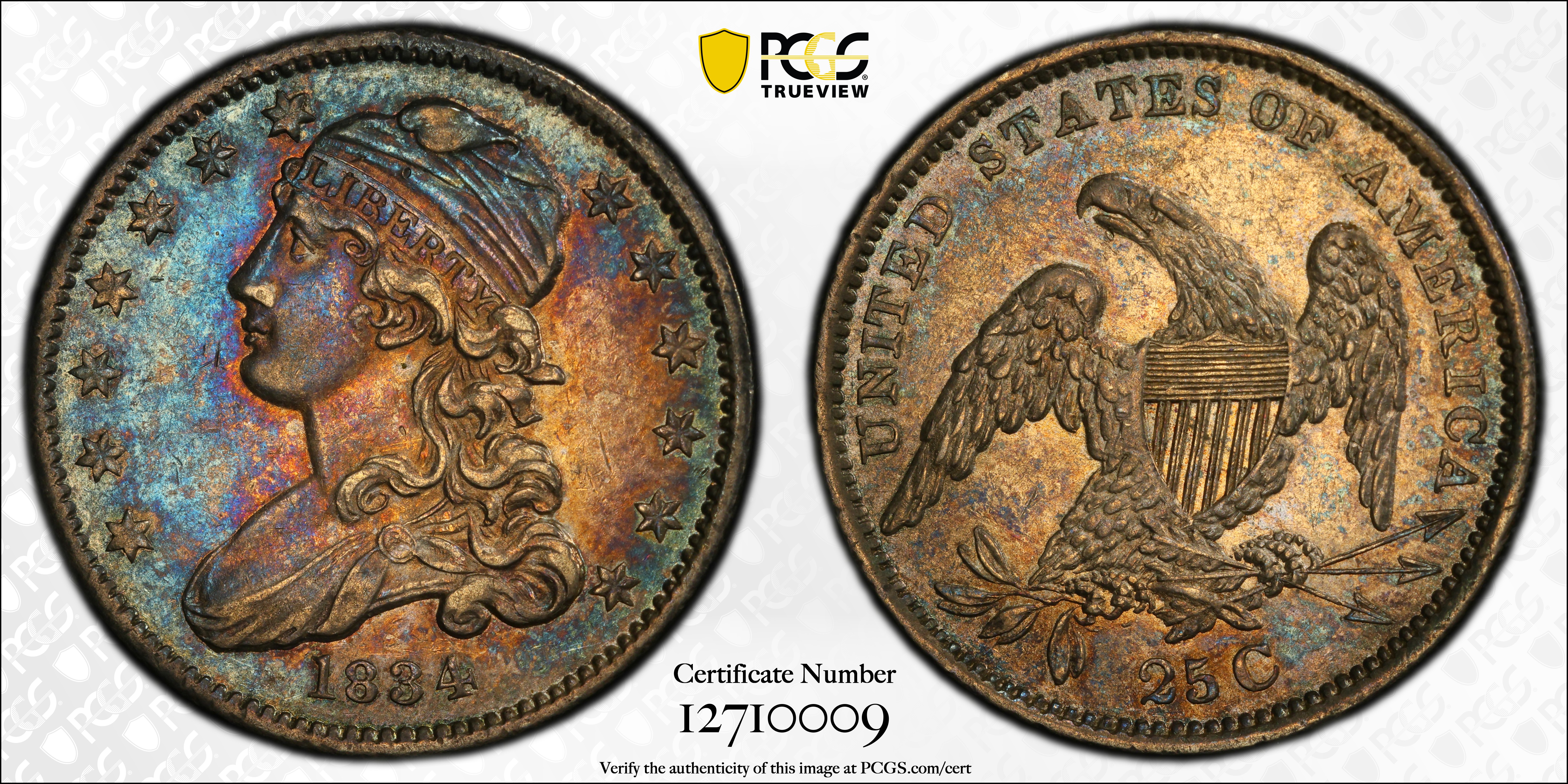 1834 25C AU58 Certification #12710009, PCGS #5353