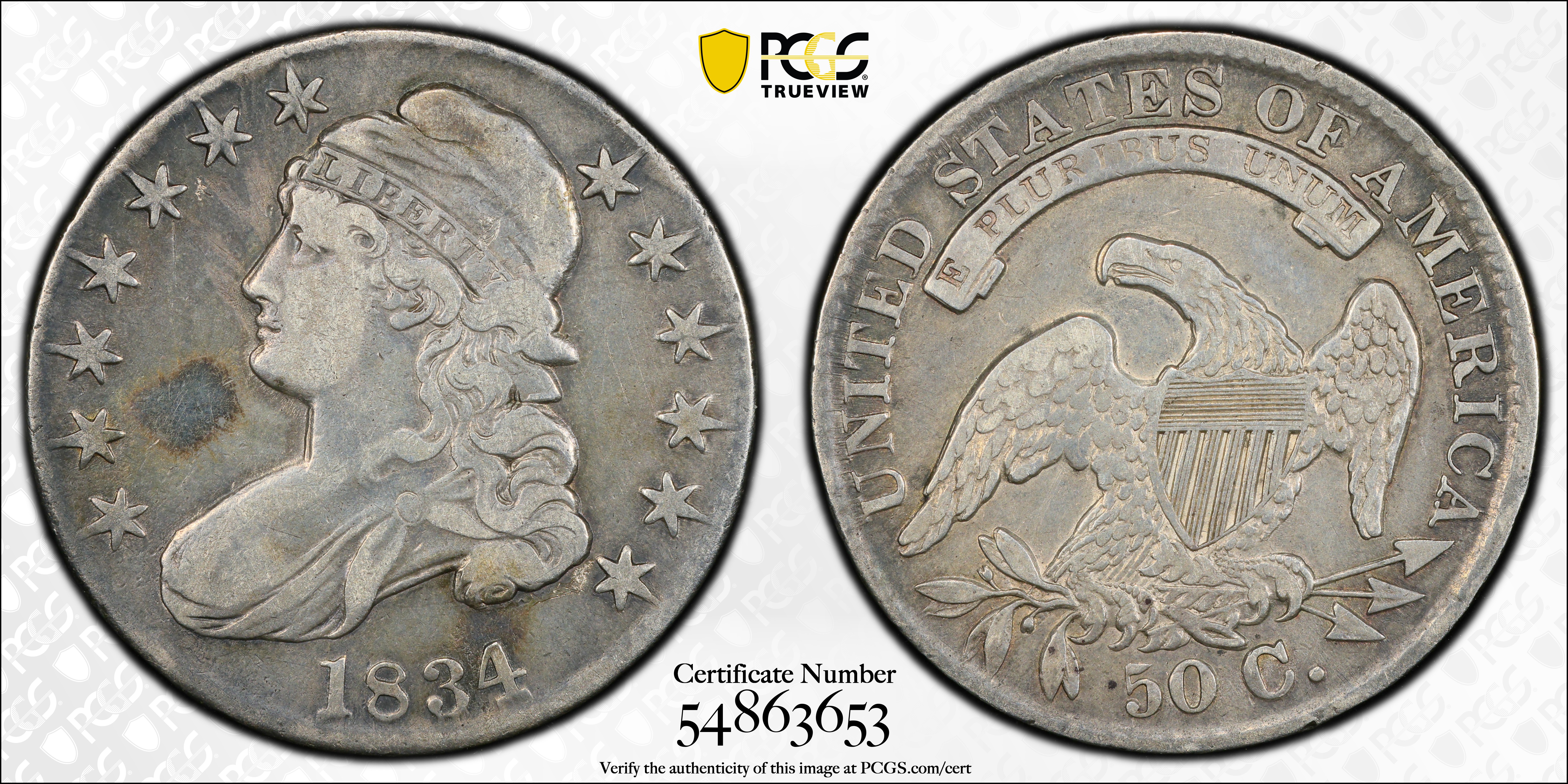 1834 50C Large Date, Large Letters N1 Certification #54863653, PCGS #6164