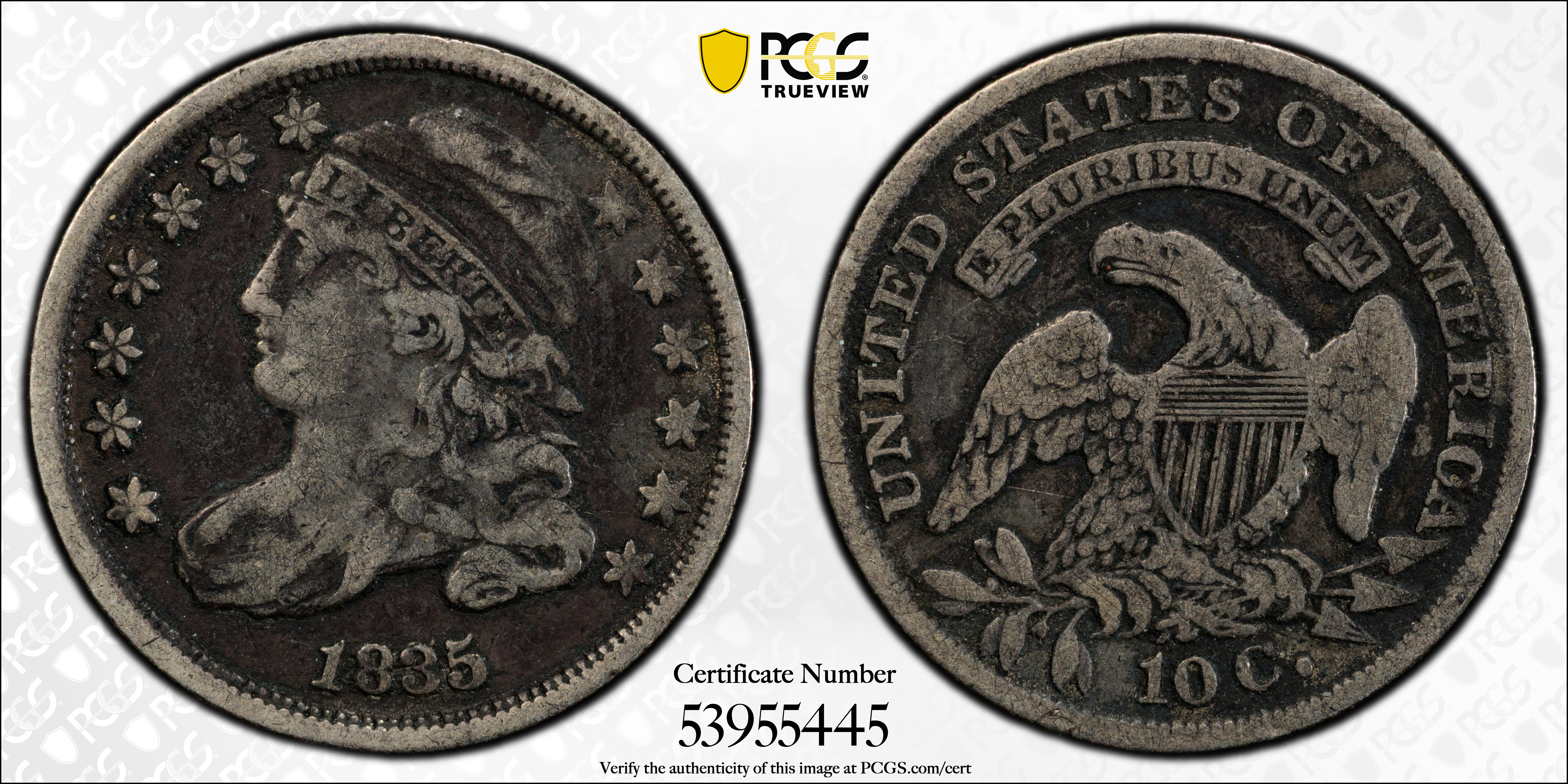 1835 10C VF20 Certification #53955445, PCGS #4527