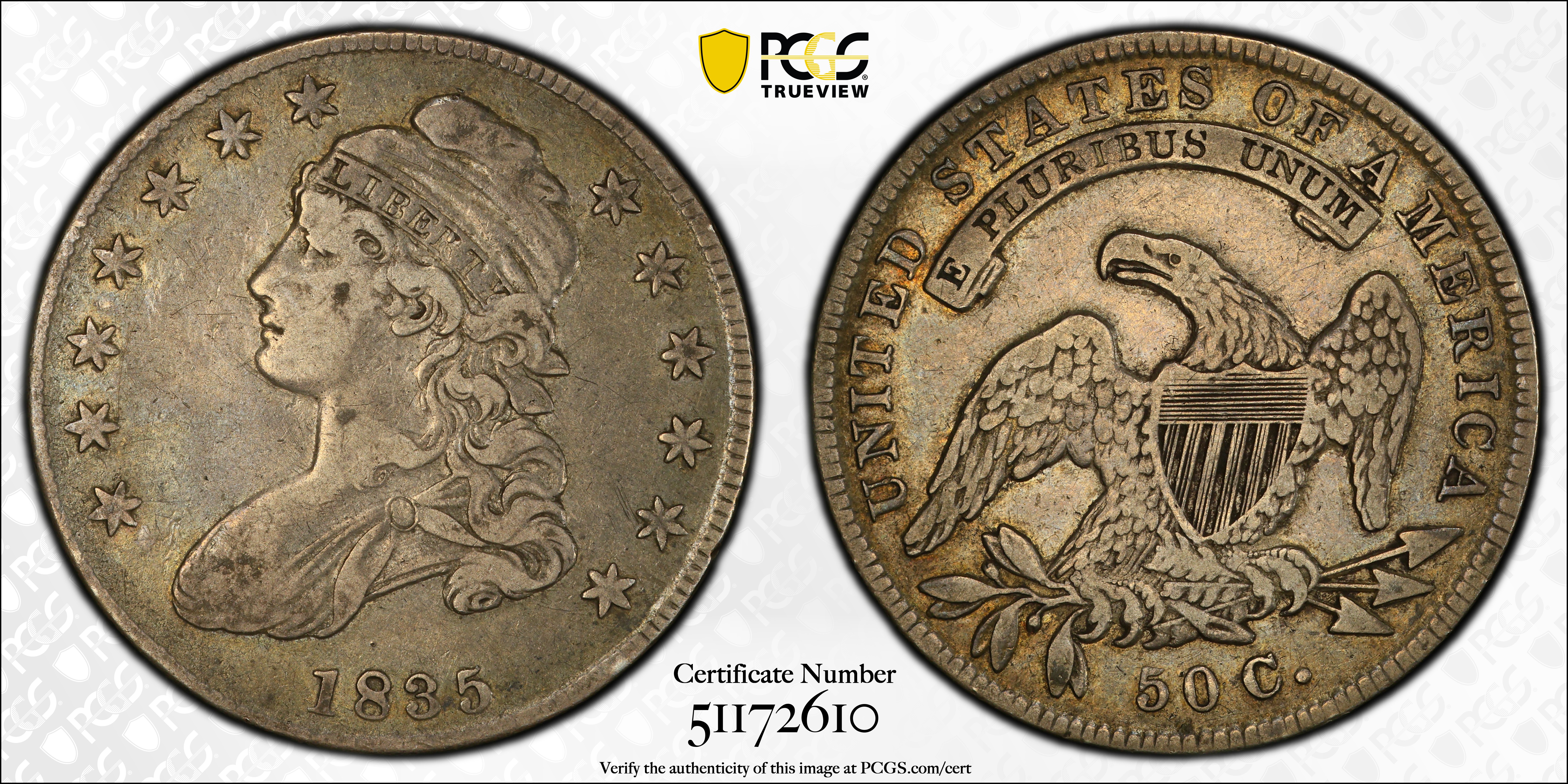 1835 50C VF25 Certification #51172610, PCGS #6168