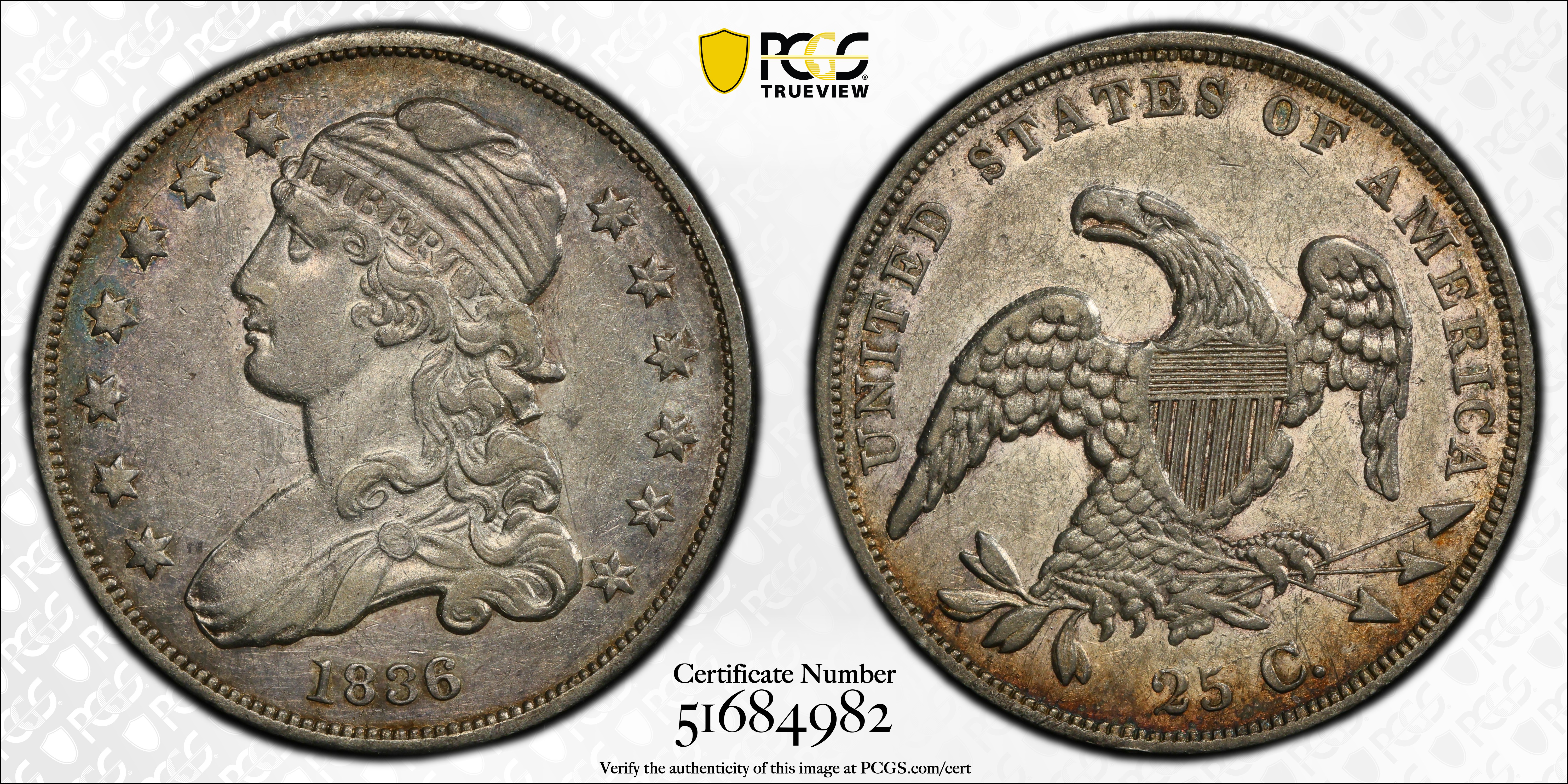 1836 25C XF45 Certification #51684982, PCGS #5355