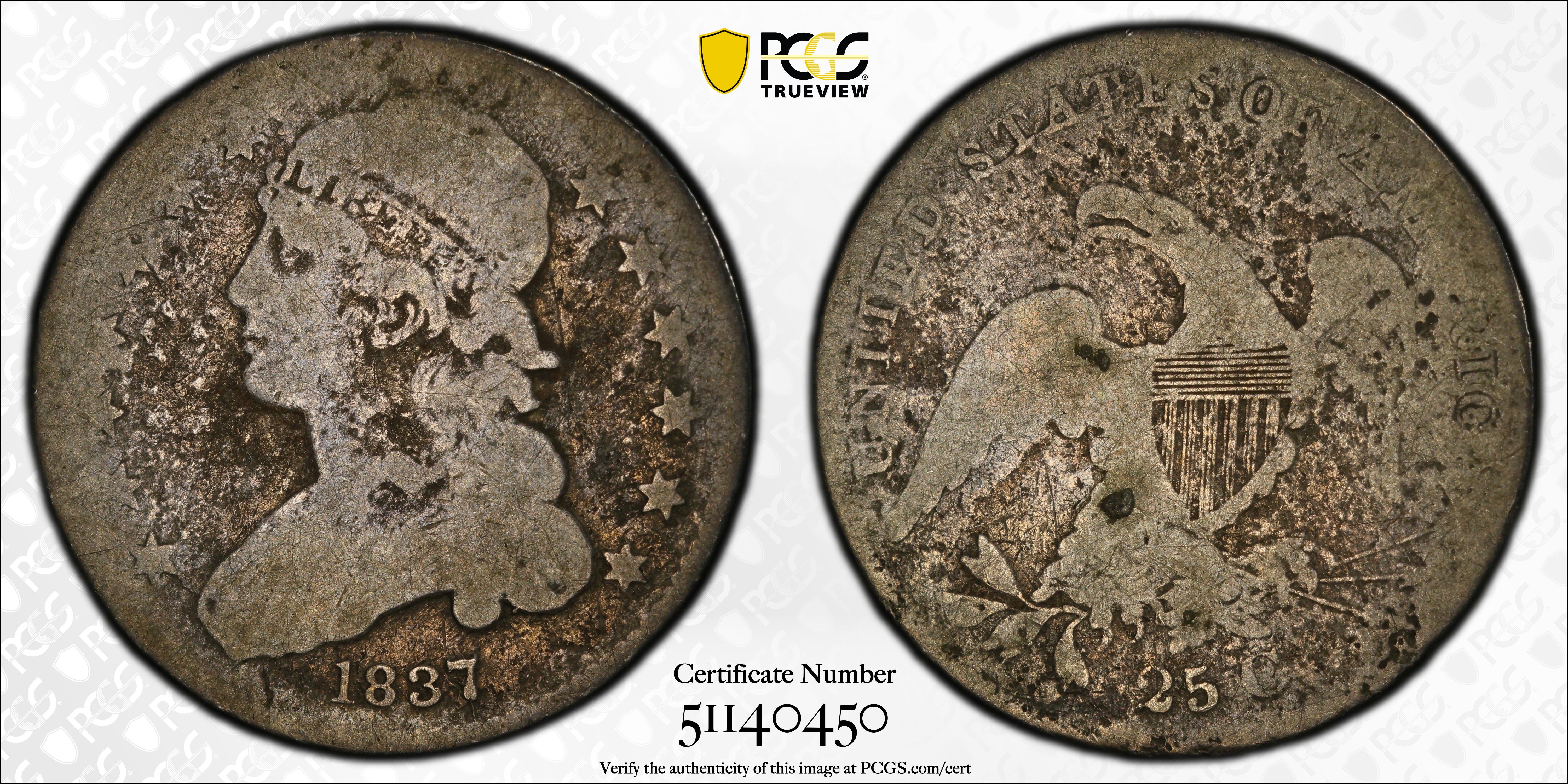 1837 25C AG3 Certification #51140450, PCGS #5356