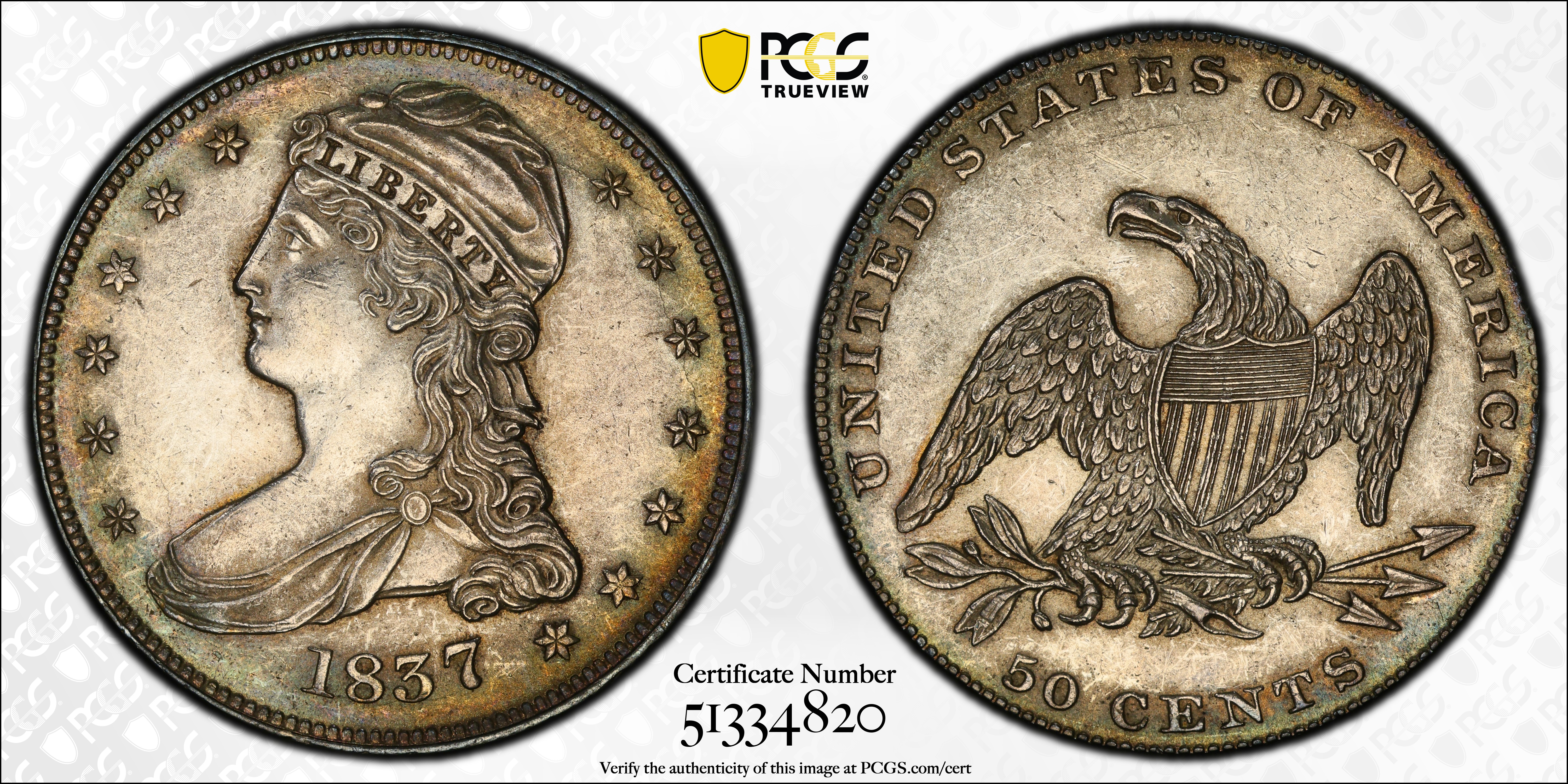 1837 50C MS62 Certification #51334820, PCGS #6176