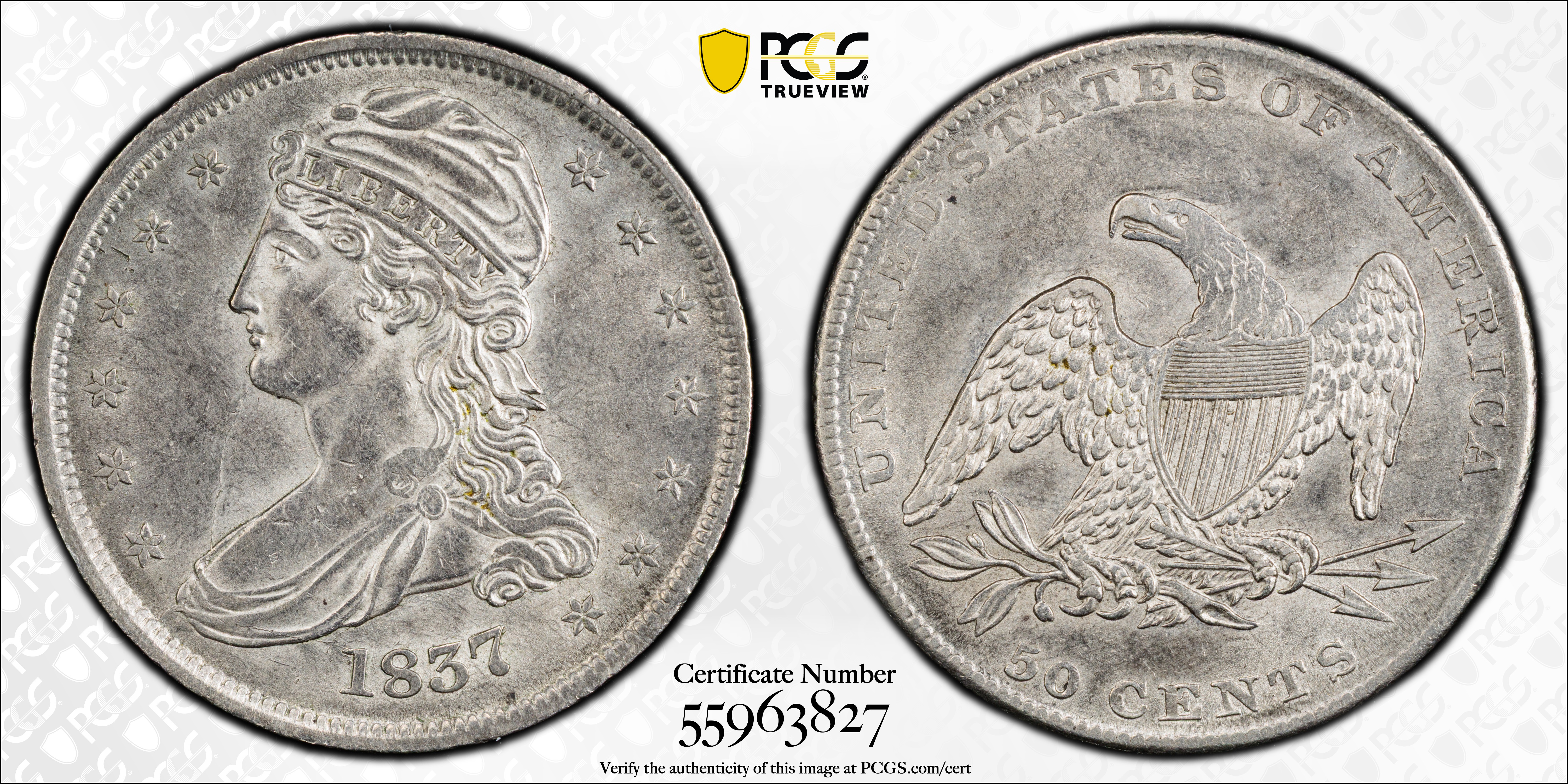 1837 50C AU53 Certification #55963827, PCGS #6176