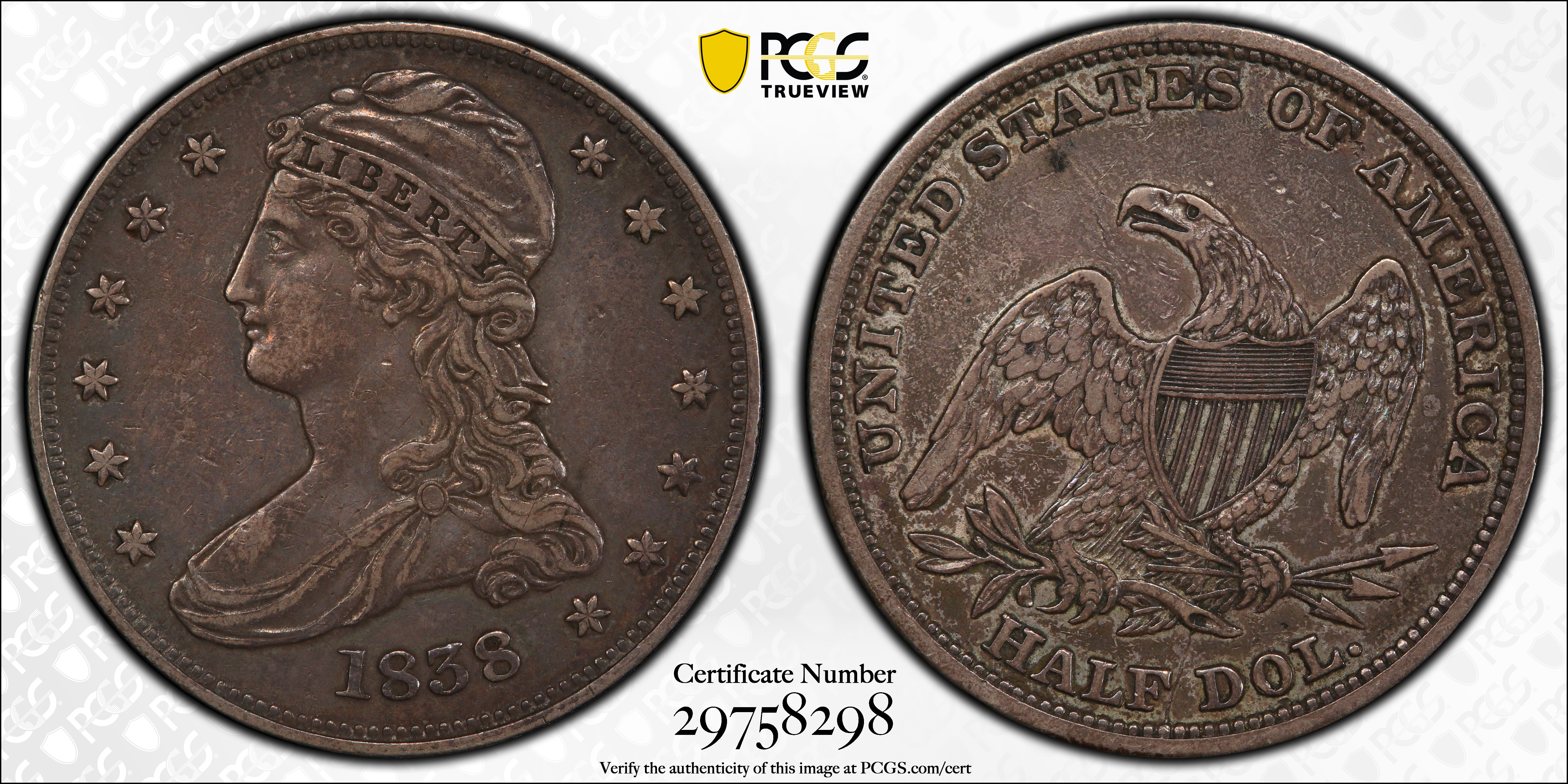 1838 50C XF45 Certification #29758298, PCGS #6177
