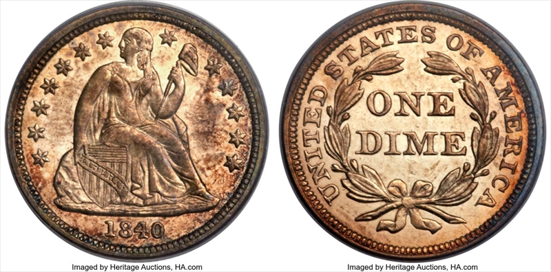 1840 10C Drapery MS63 Certification #21937694, PCGS #4578