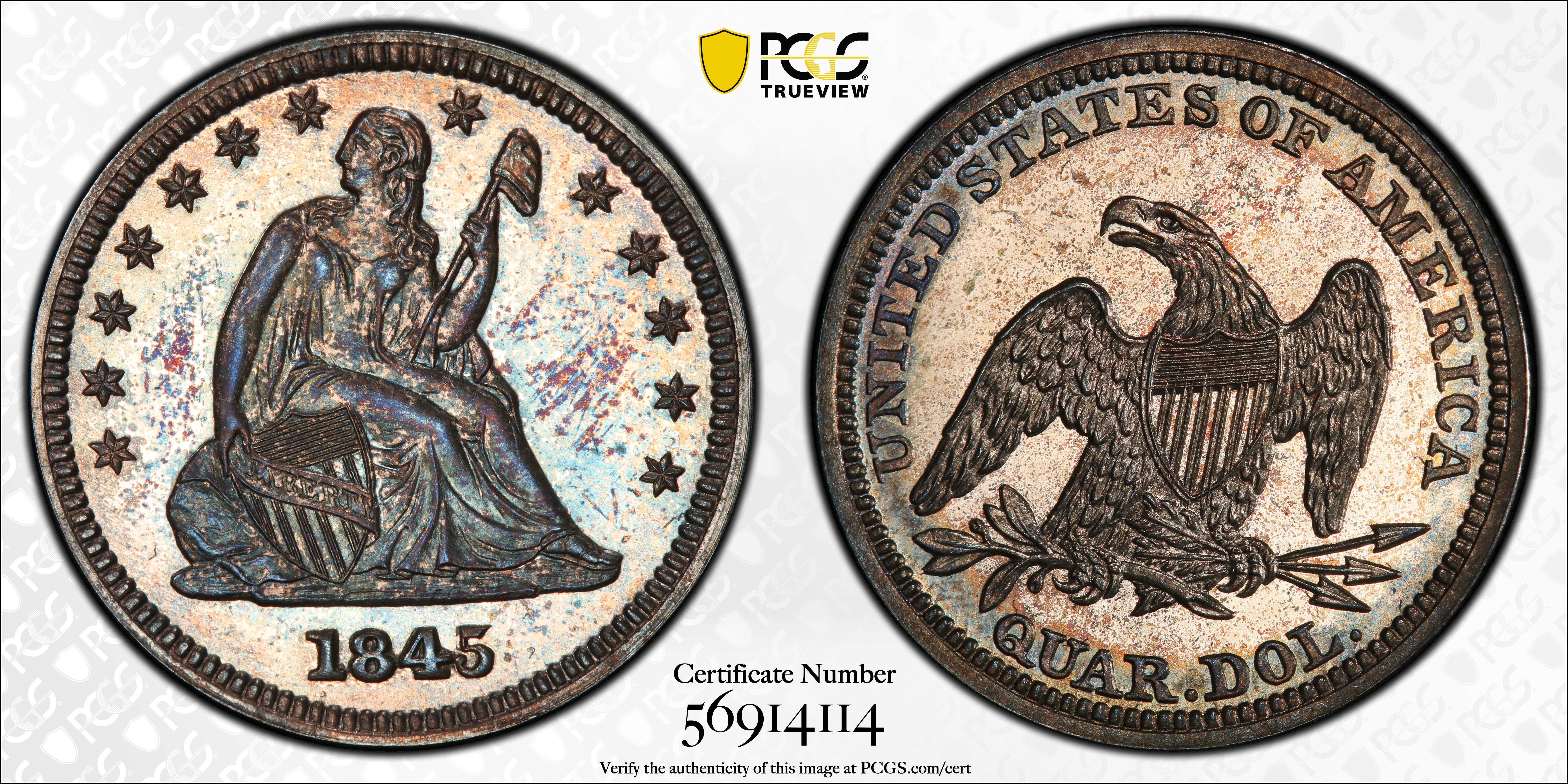 1845 25C PR64+ Certification #56914114, PCGS #5539