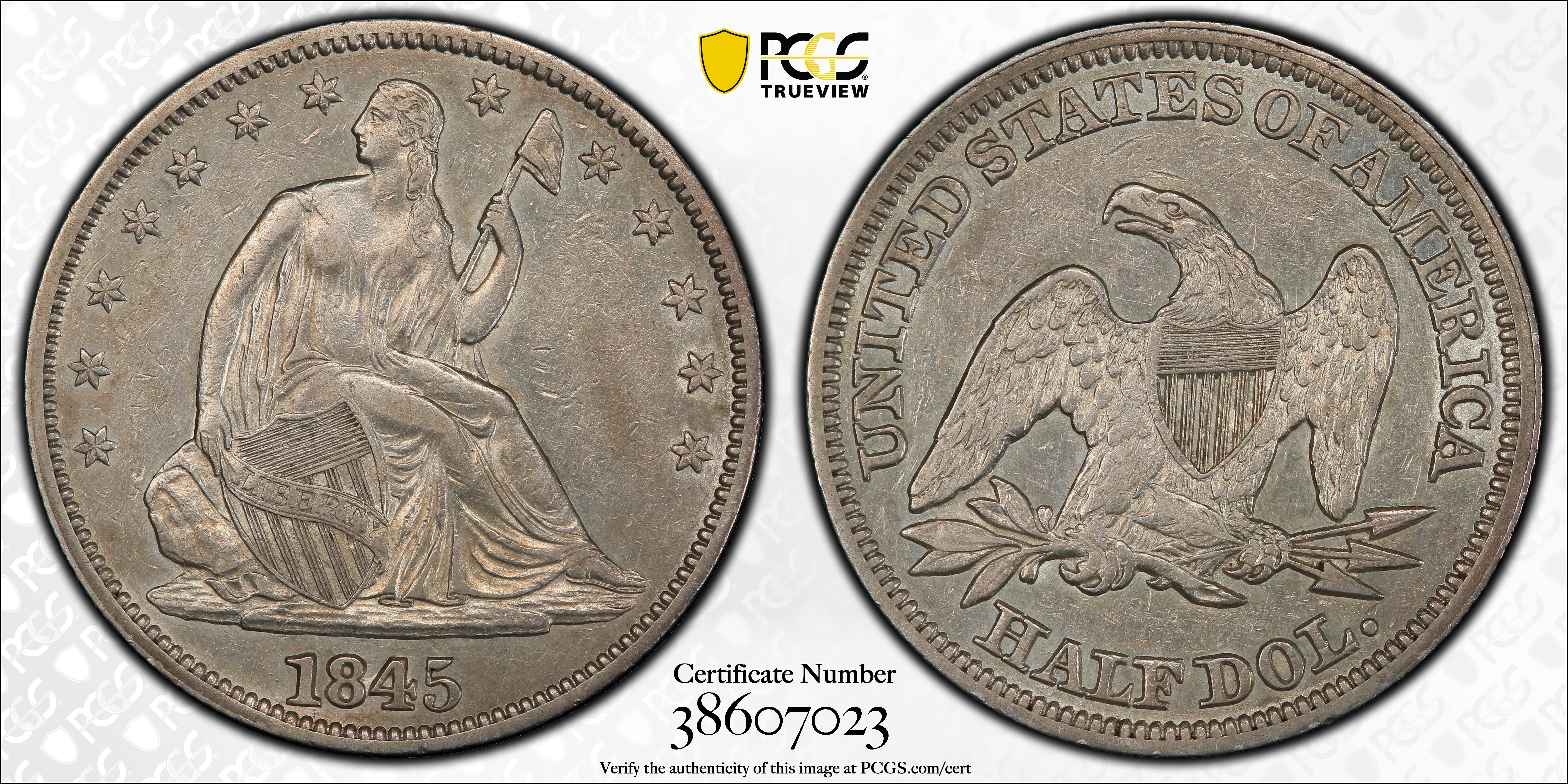 1845 50C XF45 Certification #38607023, PCGS #6248