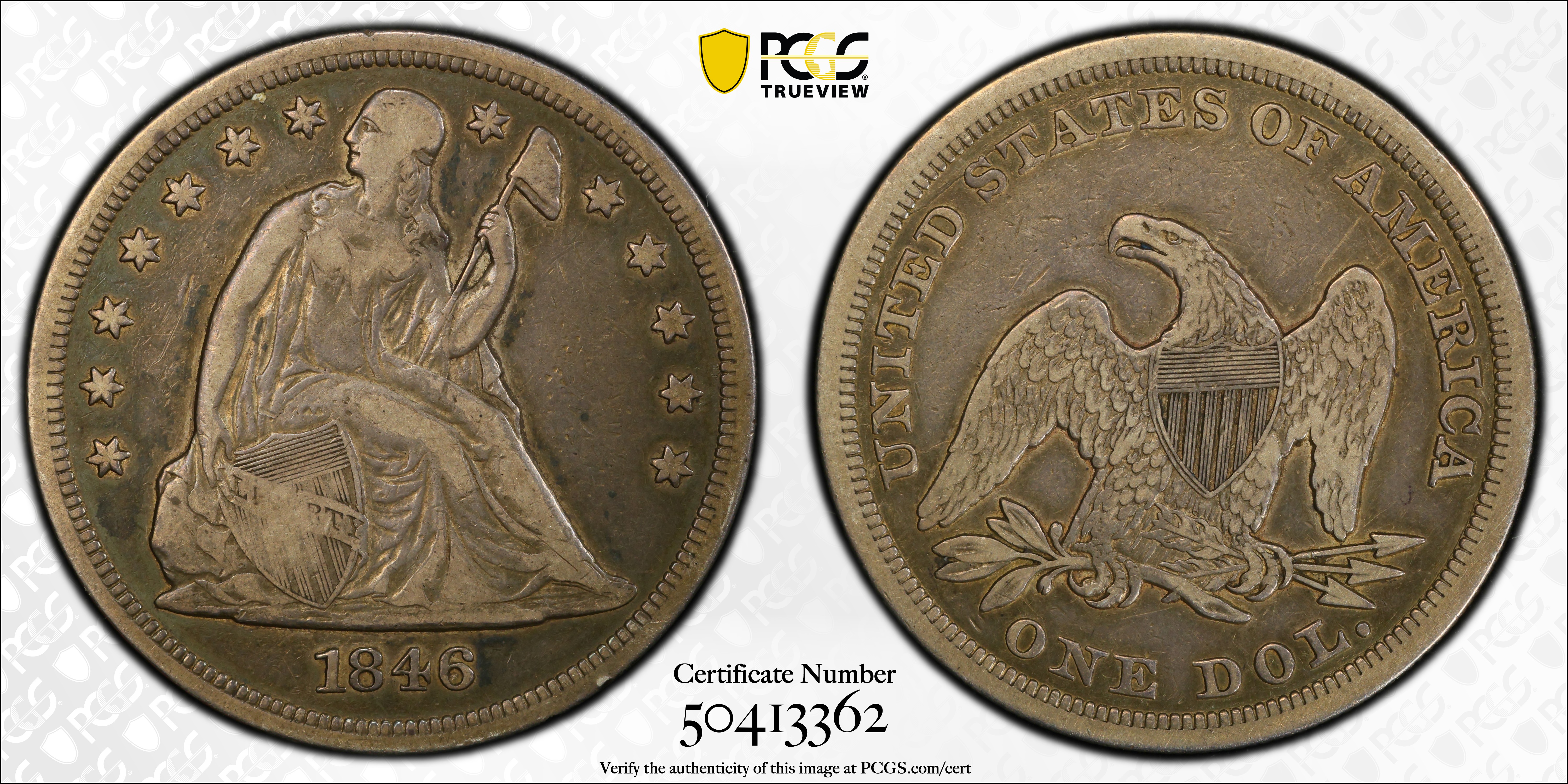 1846 $1 VF20 Certification #50413362, PCGS #6932