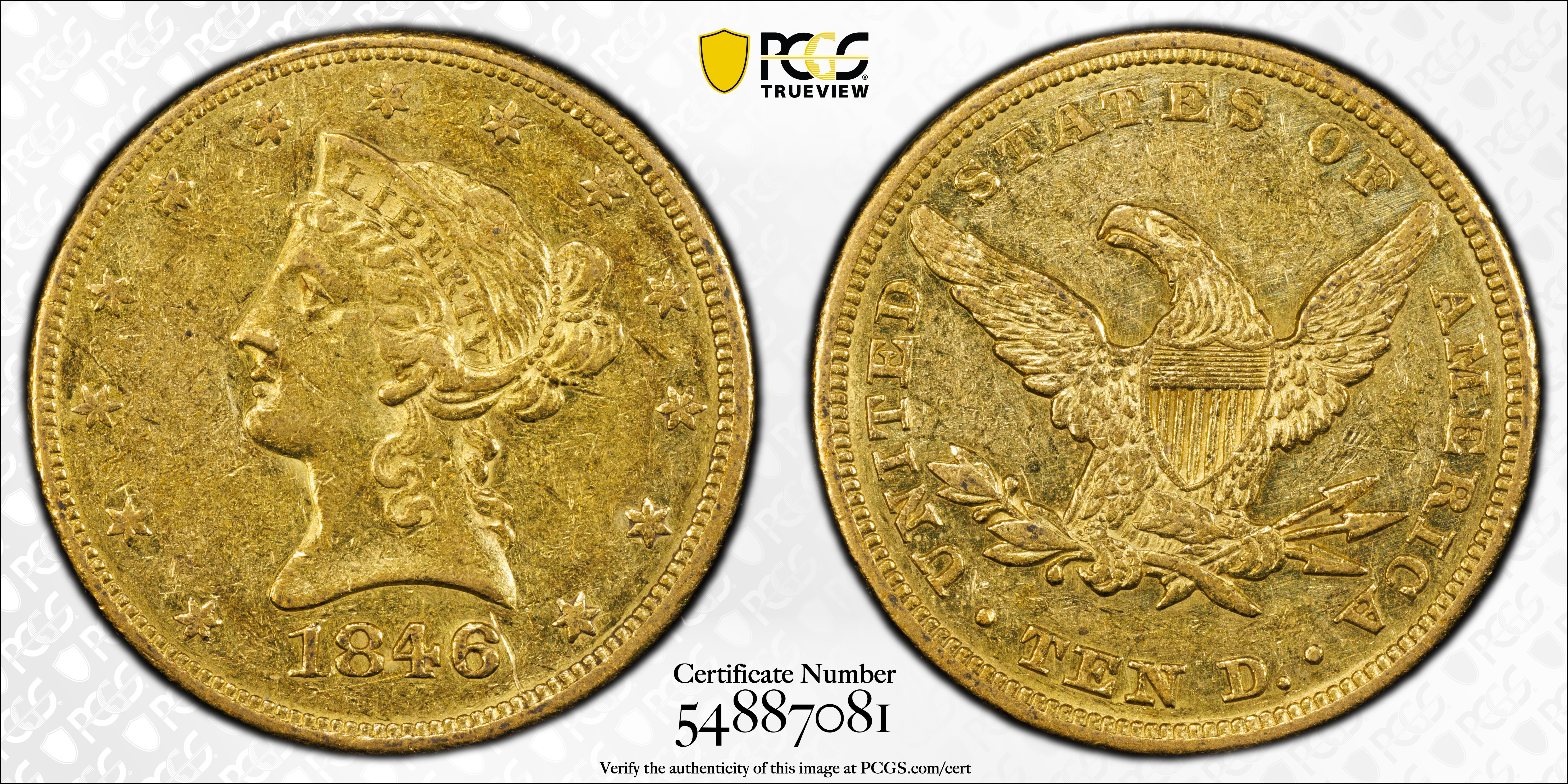 1846 $10 AU53 Certification #54887081, PCGS #8594