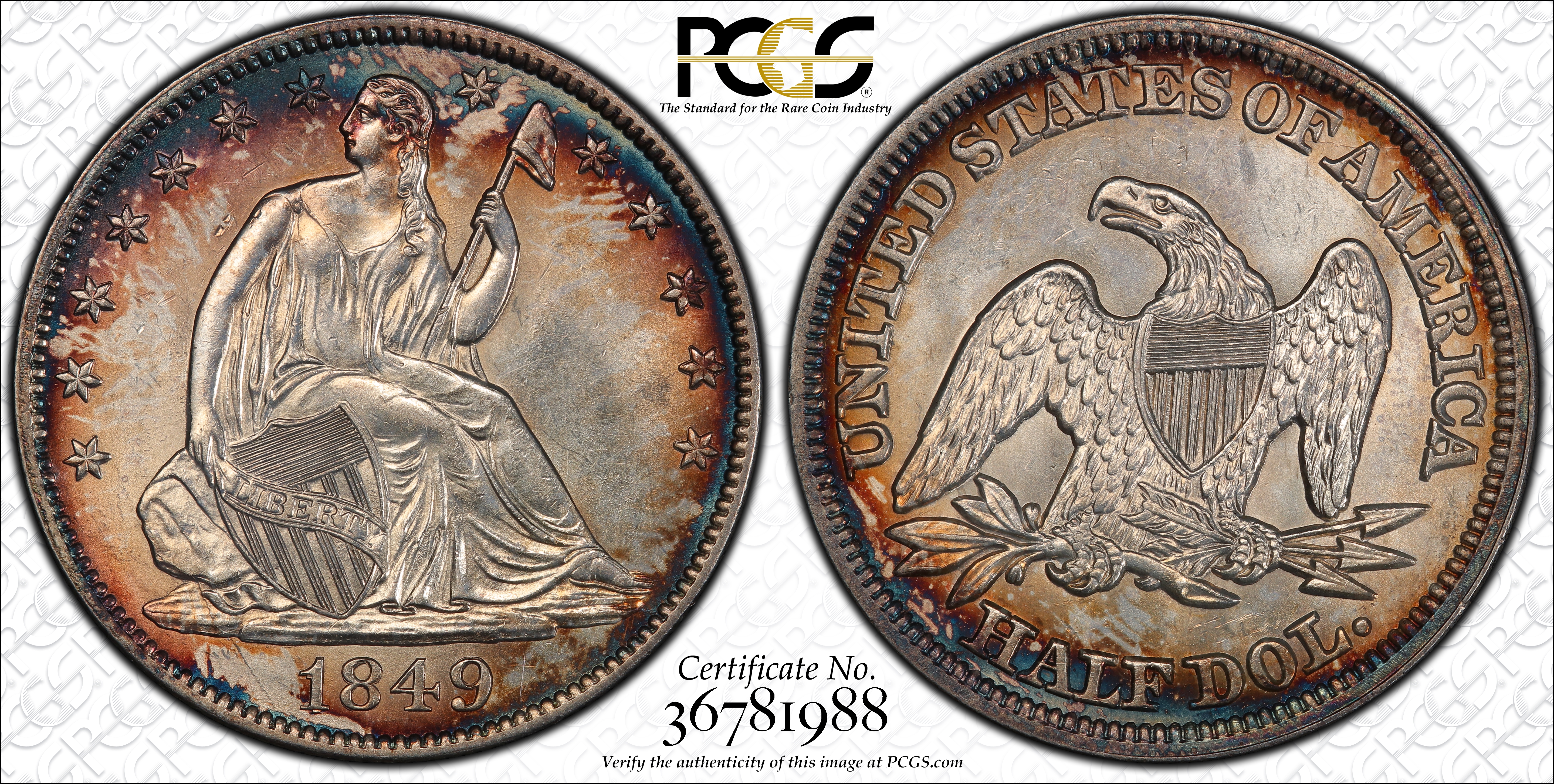1849 50C MS64 Certification #36781988, PCGS #6262
