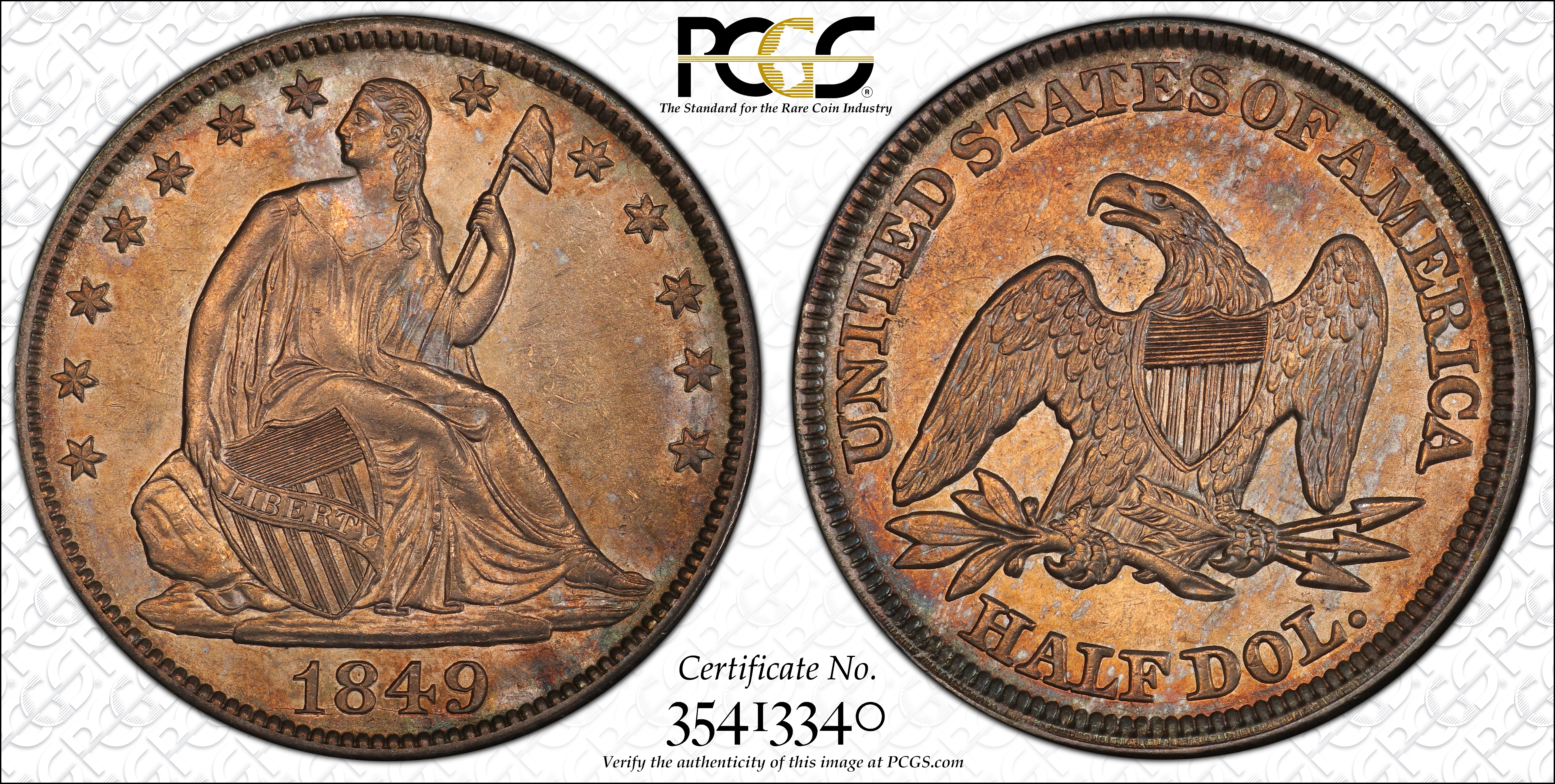1849 50C MS62 Certification #35595282, PCGS #6262