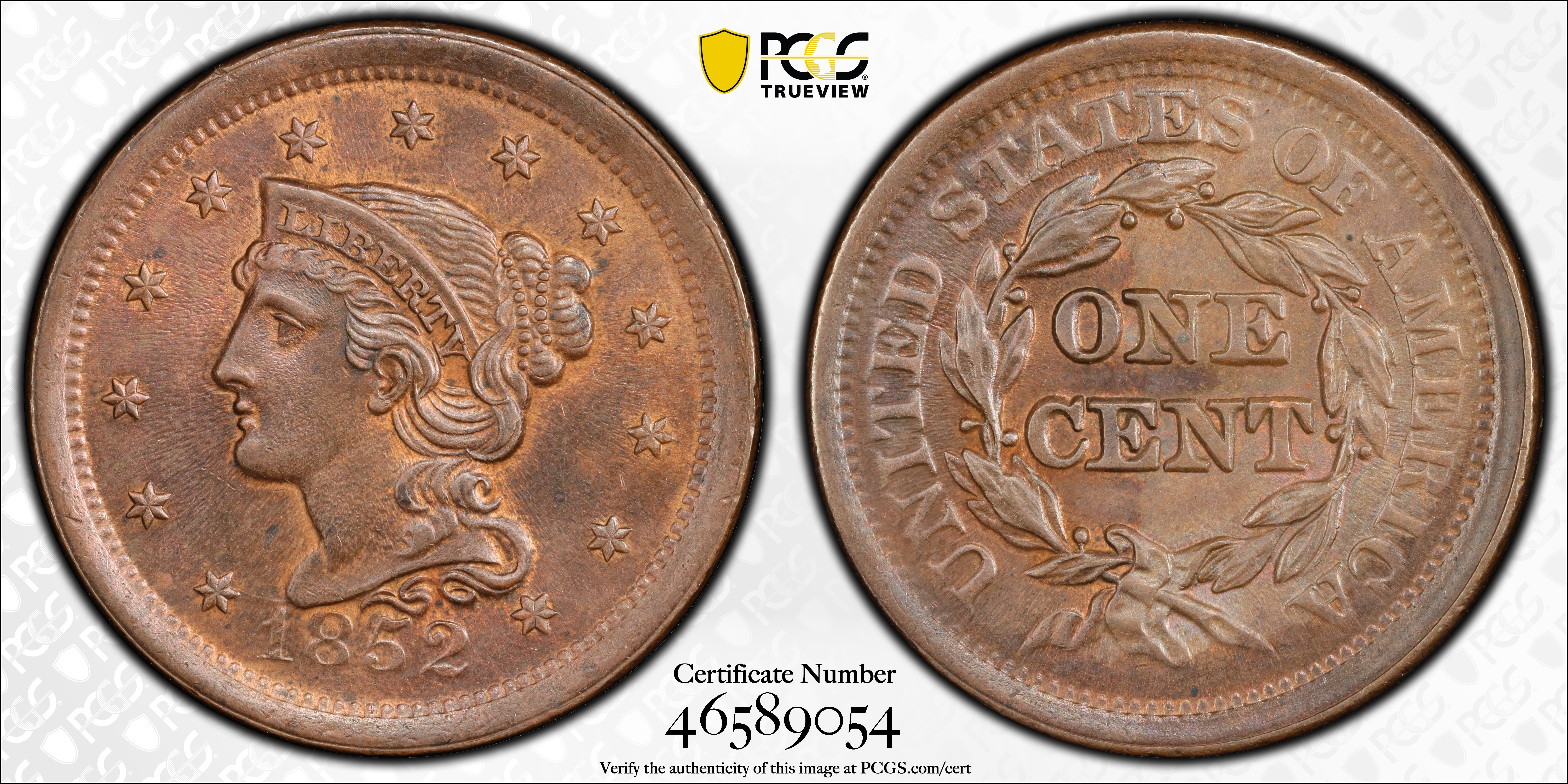 1852 1C, BN N1BN Certification #46589054, PCGS #1898