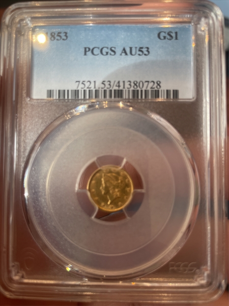 1853 G$1 AU53 Certification #41380728, PCGS #7521