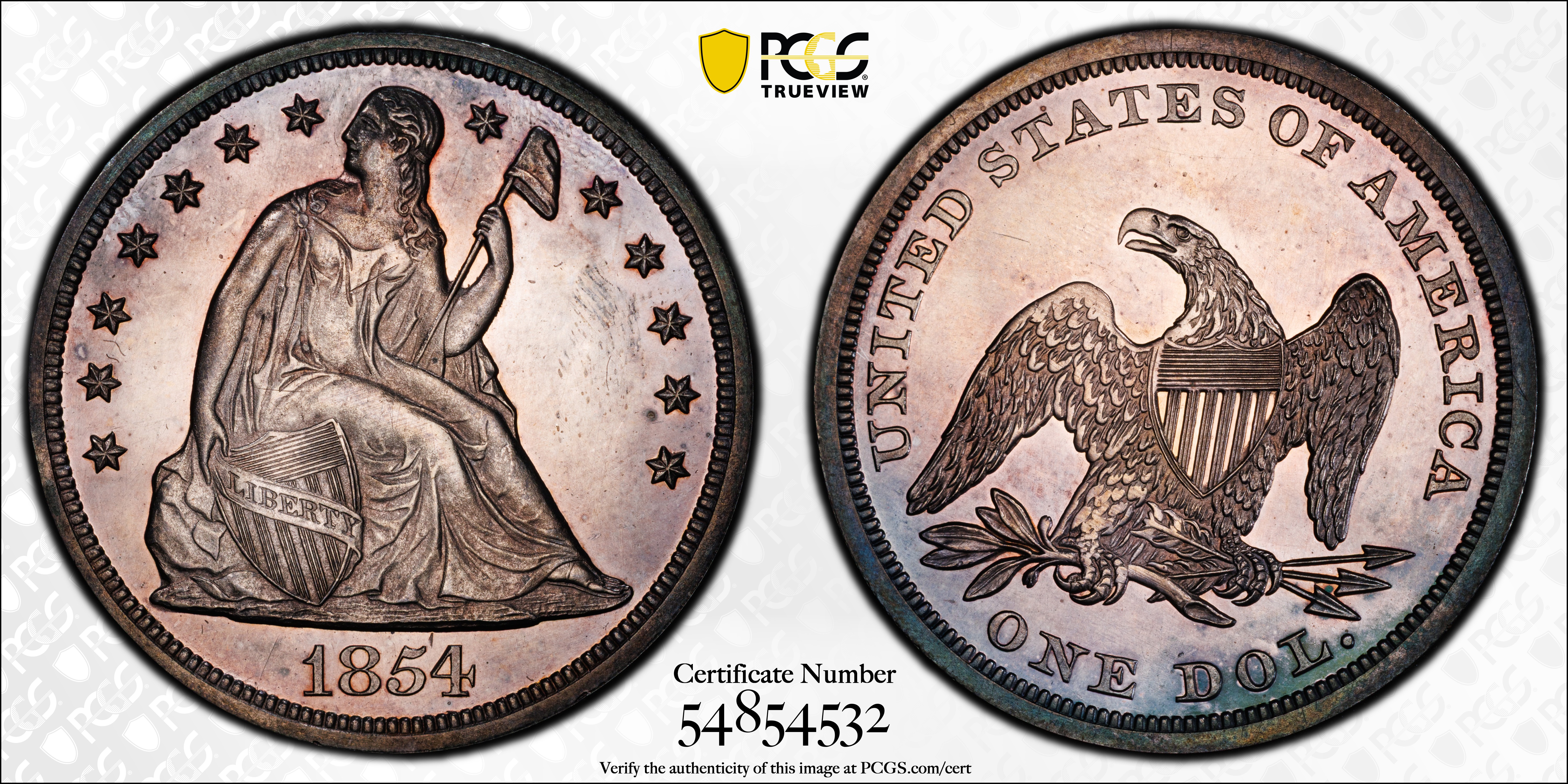 1854 $1, CAM PR64CAM Certification #54854532, PCGS #86997
