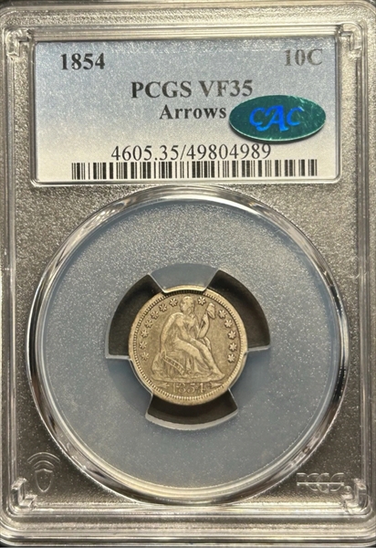 1854 10C VF35 Certification #49804989, PCGS #4605
