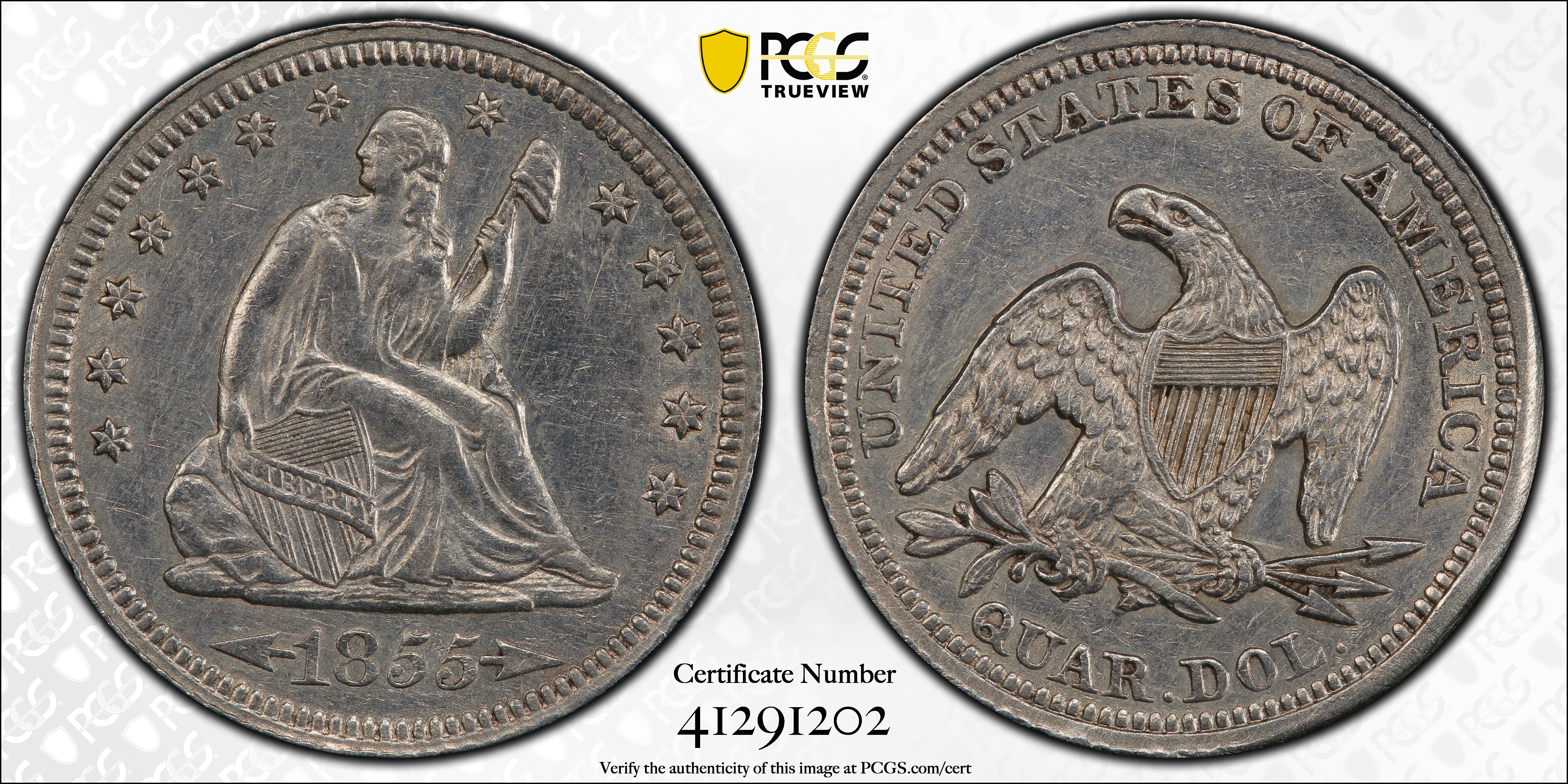 1855 25C N1 Certification #41291202, PCGS #5435