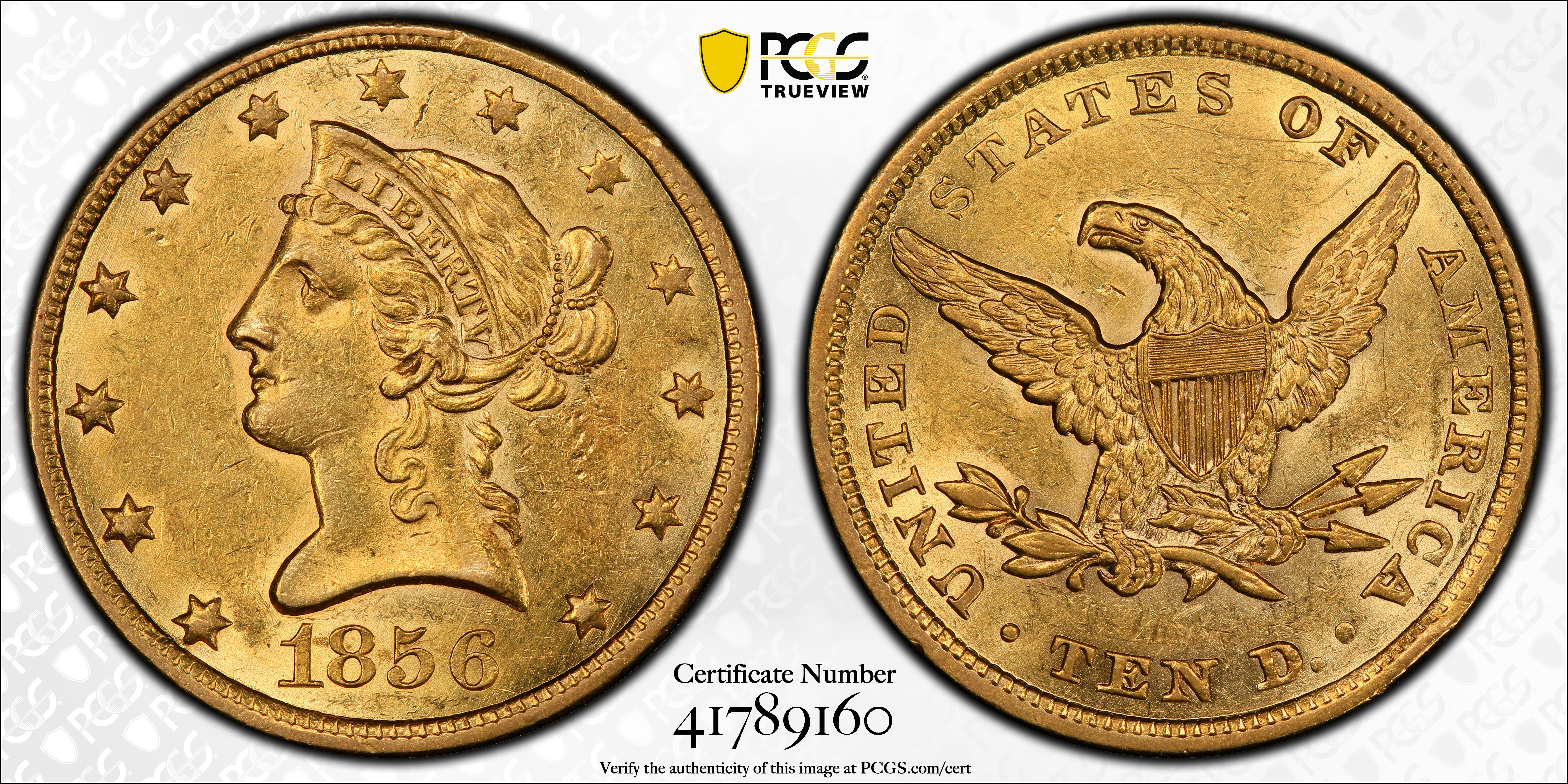 1856 $10 AU58+ Certification #41789160, PCGS #8619