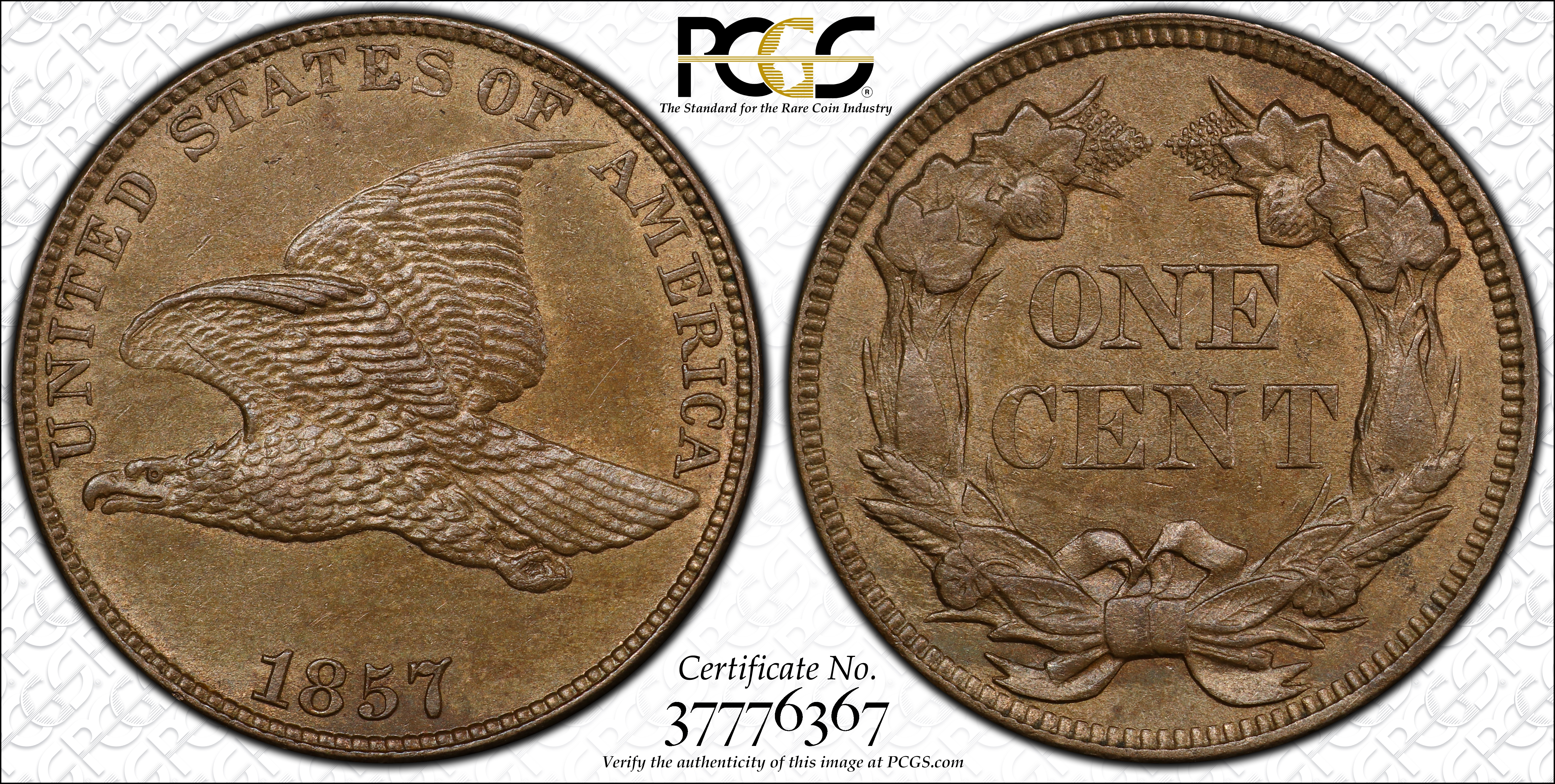 1857 1C Flying Eagle MS63 Certification #37776367, PCGS #2016