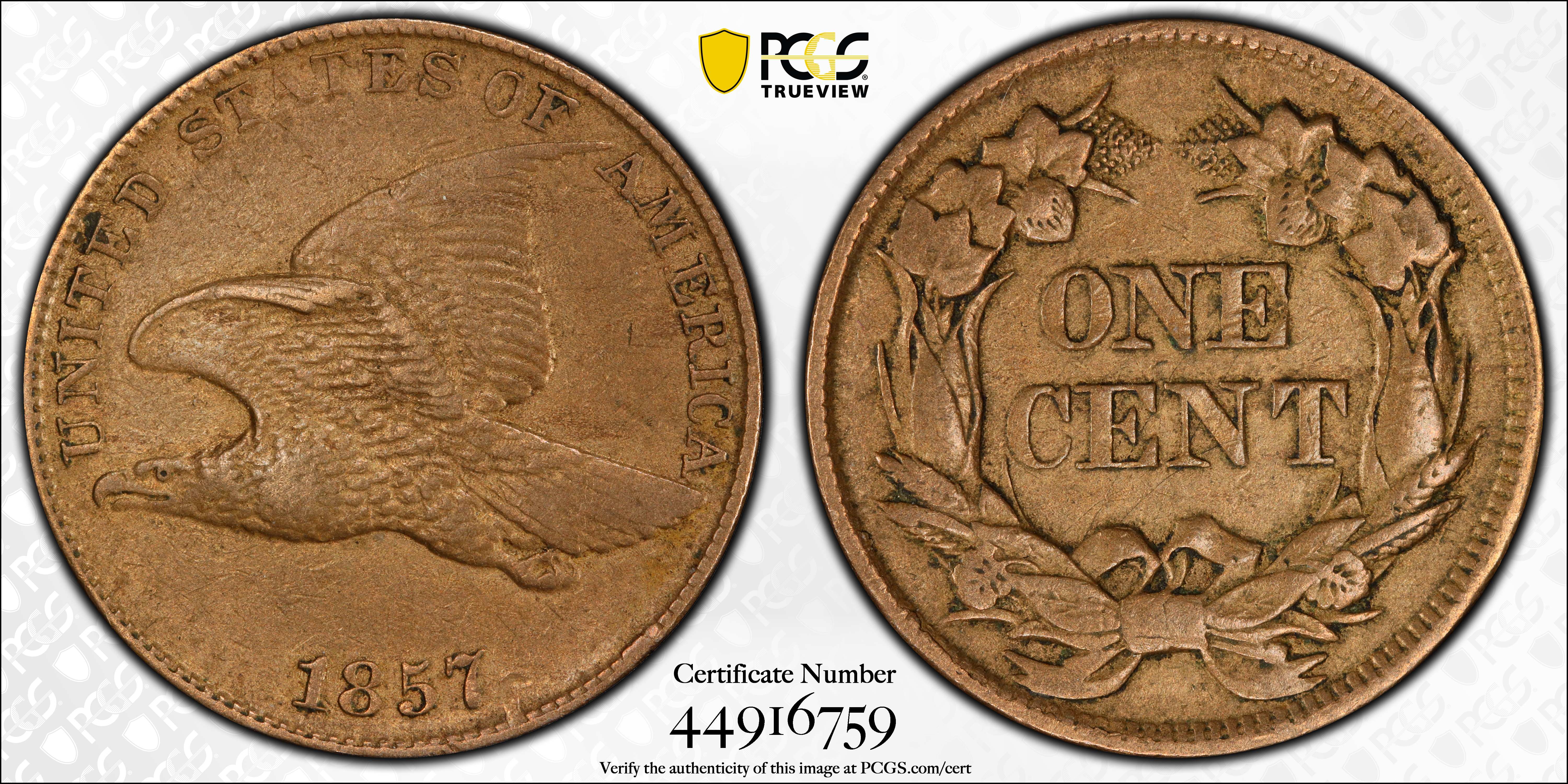 1857 1C Flying Eagle XF45 Certification #44916759, PCGS #2016