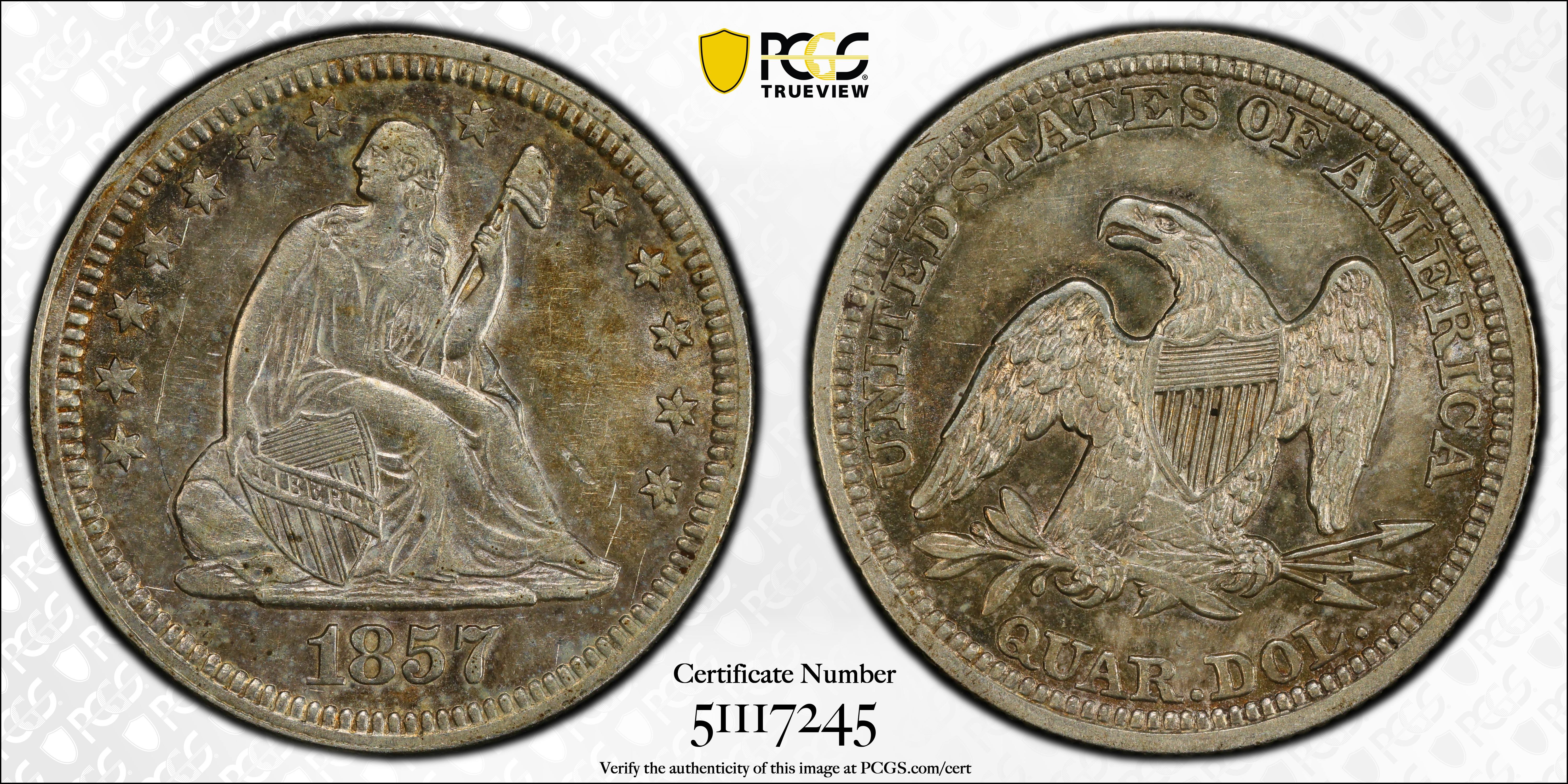1857 25C AU55 Certification #51117245, PCGS #5442