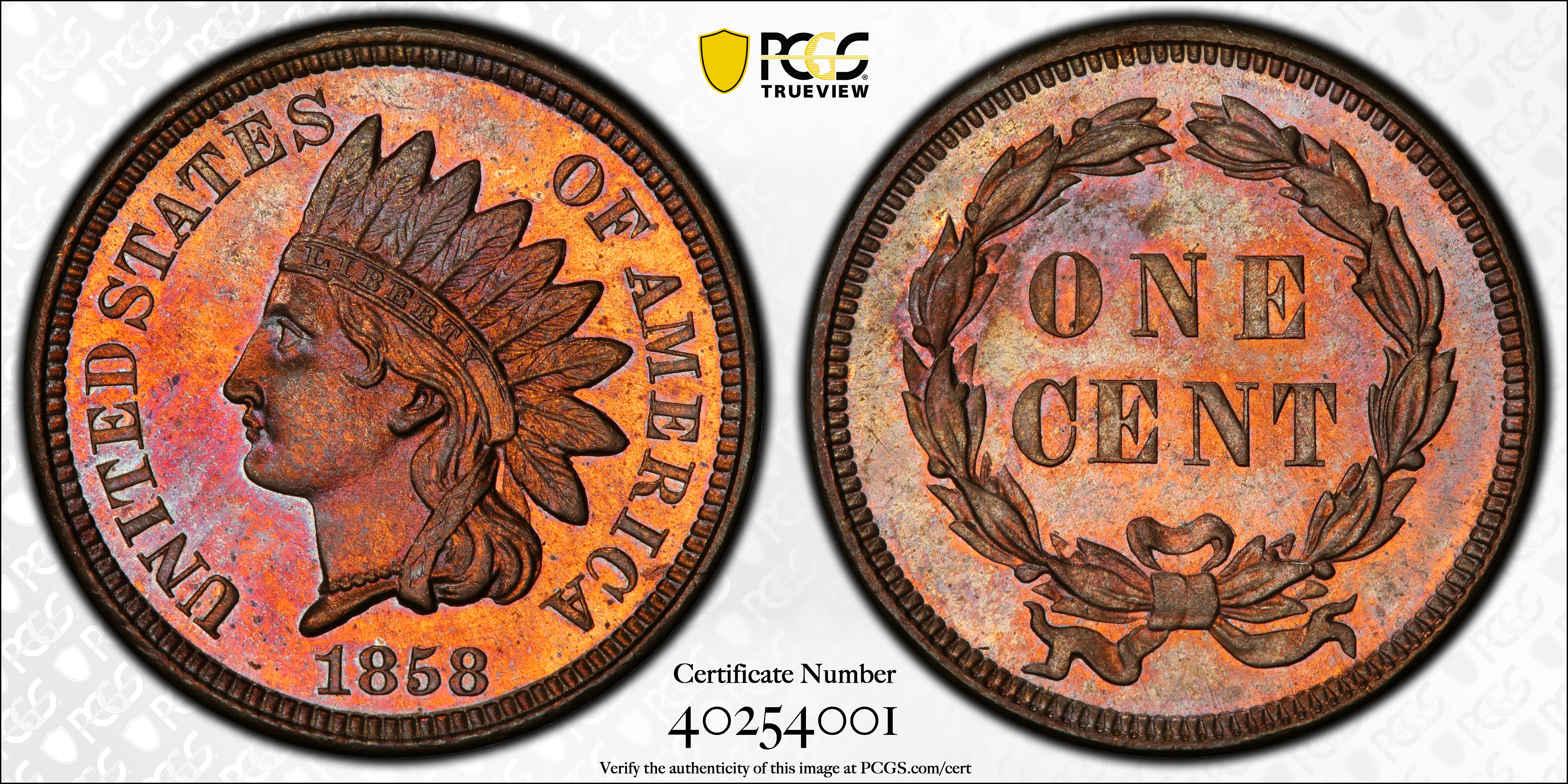1858 1C J-208 MS64 Certification #40254001, PCGS #11884