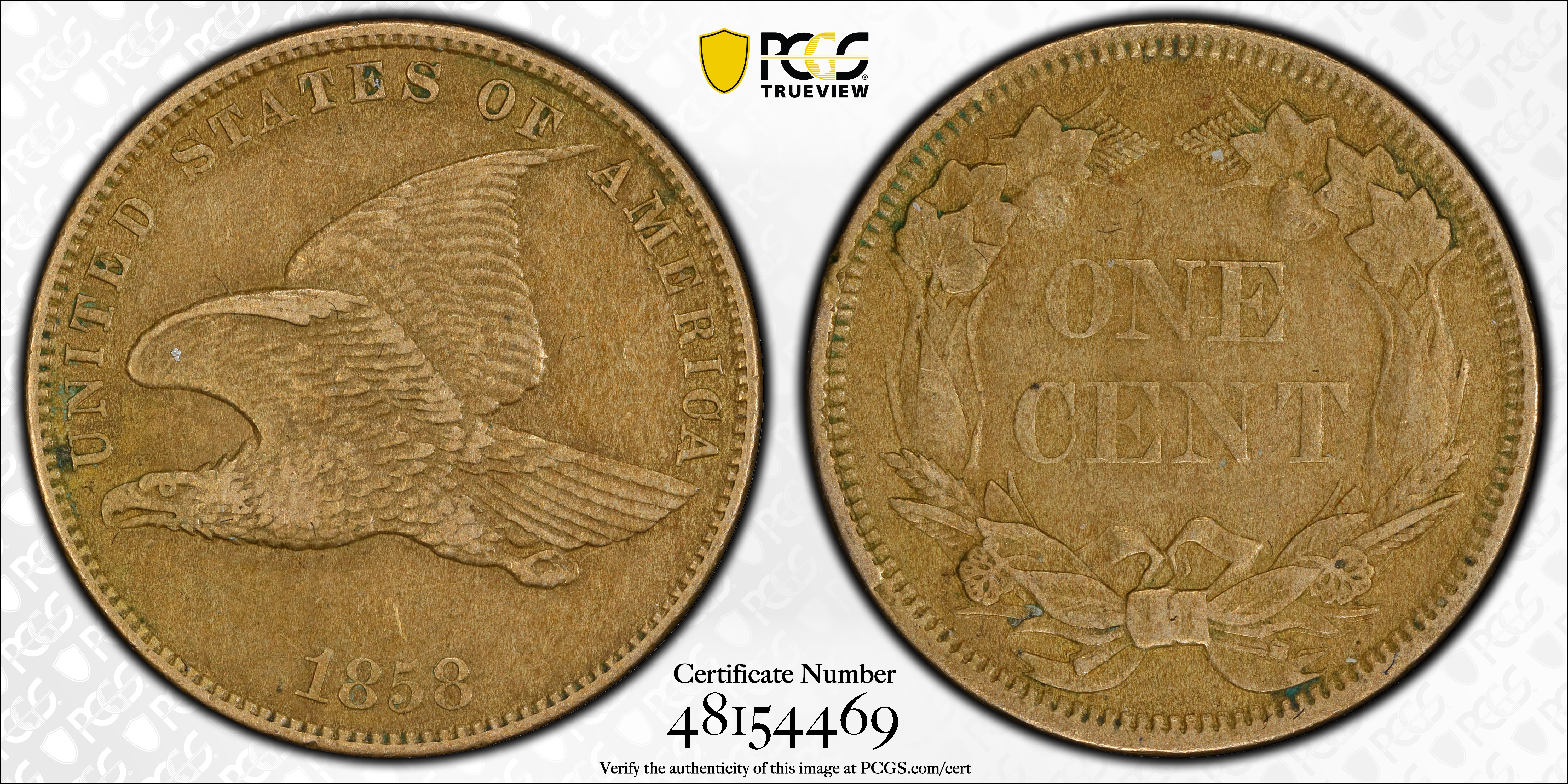 1858 1C Small Letters XF45 Certification #48154469, PCGS #2020