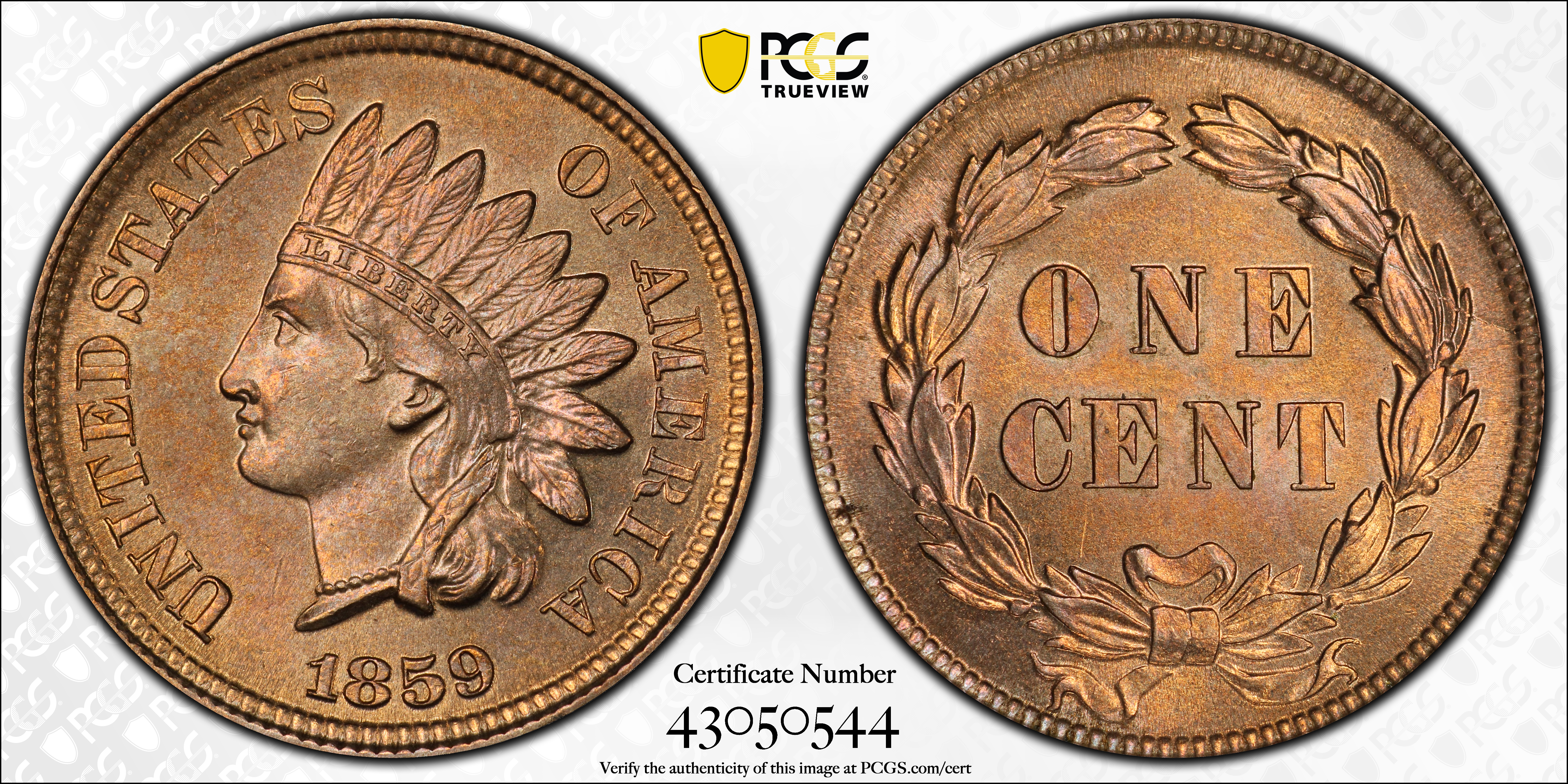 1859 1C MS65 Certification #43050544, PCGS #2052