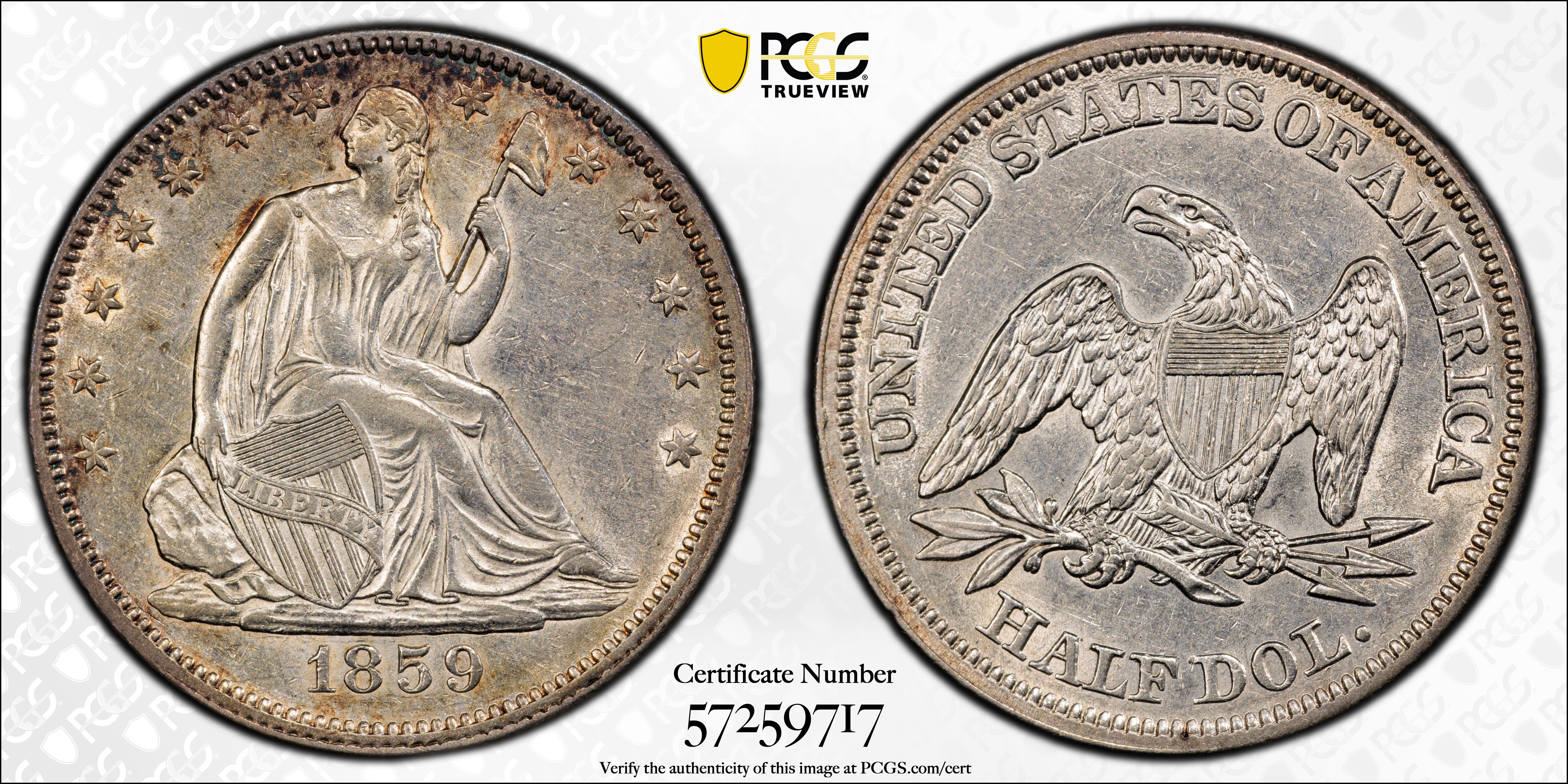 1859 50C AU50 Certification #57259717, PCGS #6296
