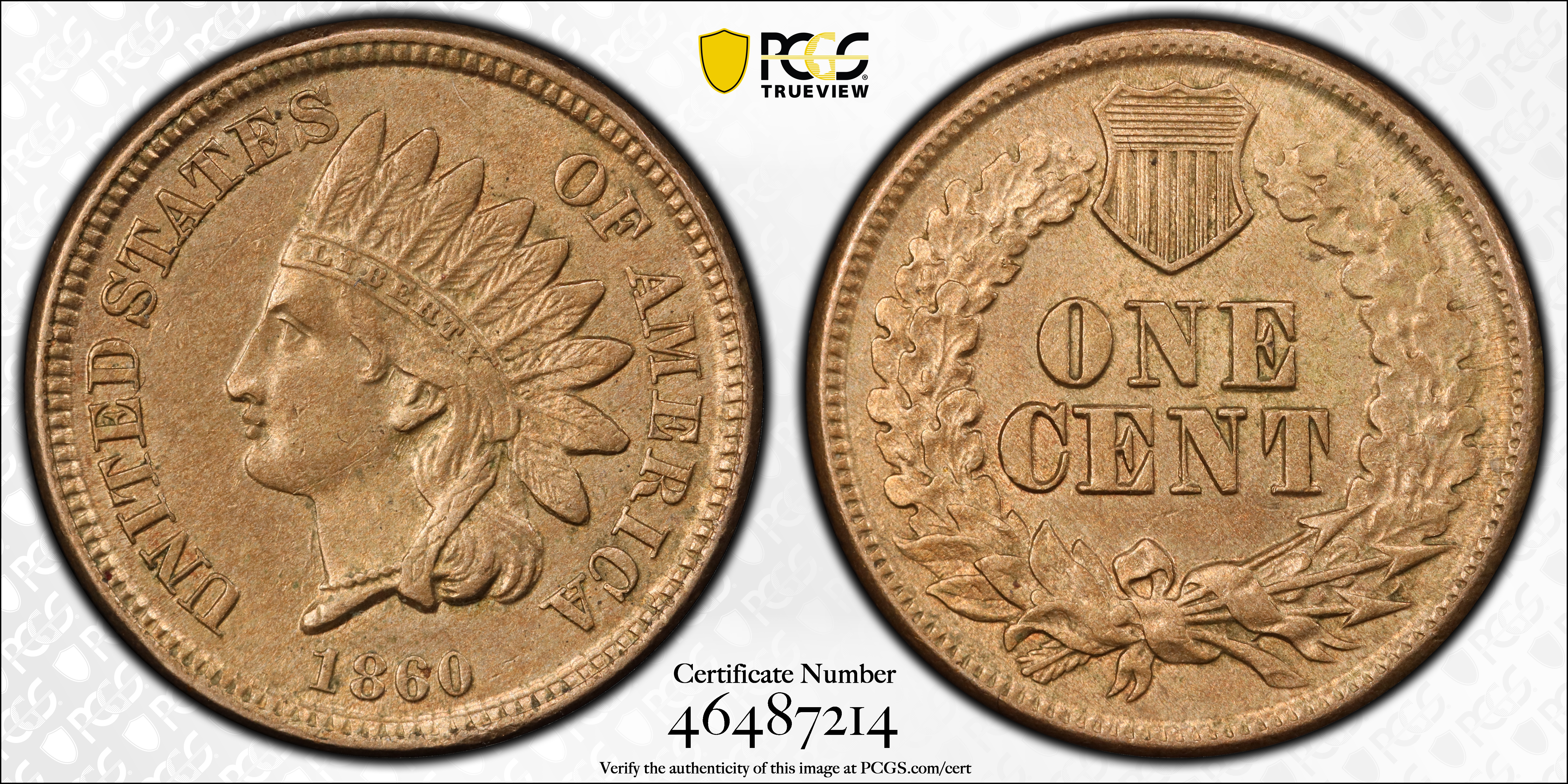 1860 1C AU58 Certification #46487214, PCGS #2058