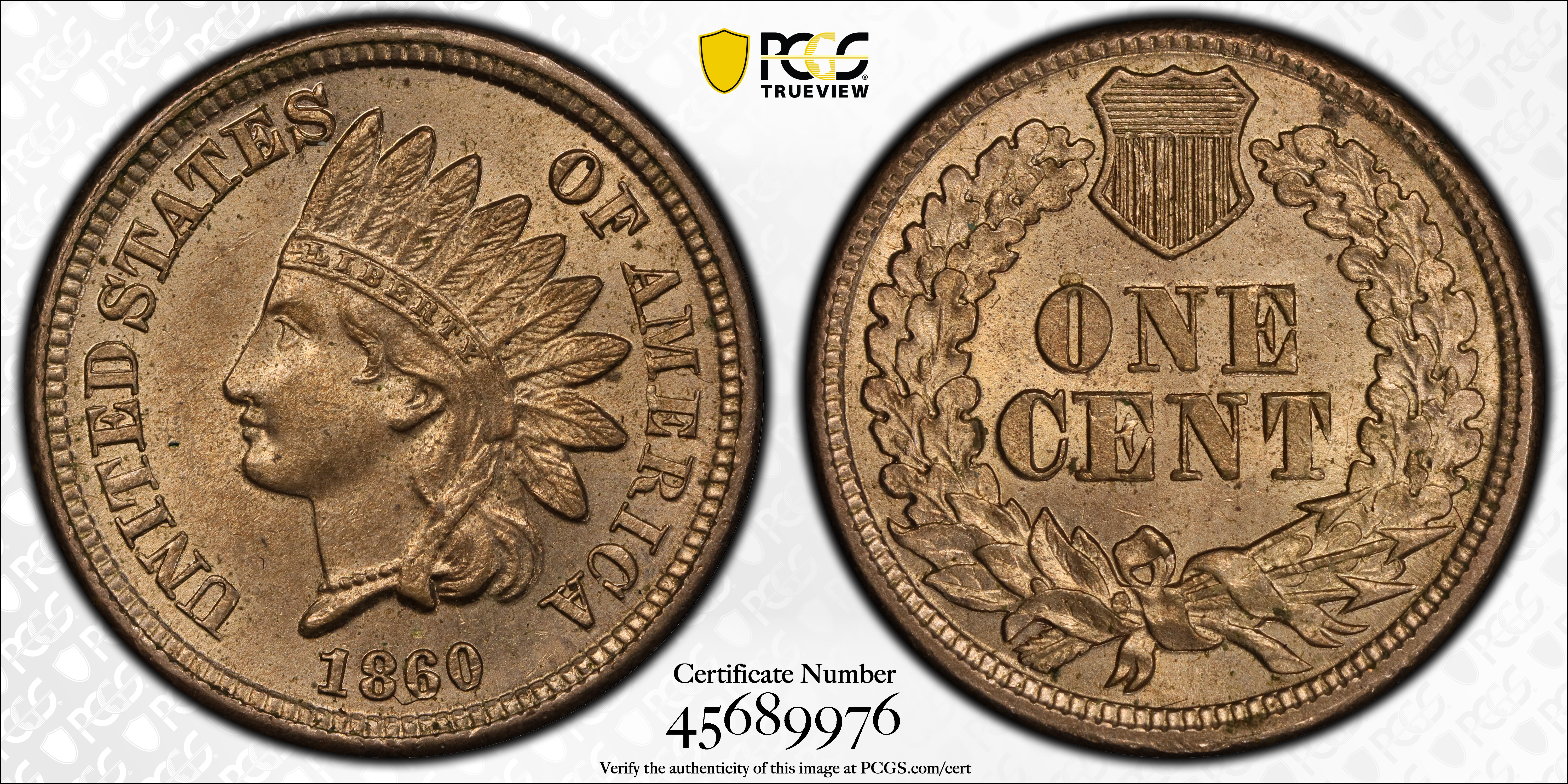 1860 1C MS64 Certification #45689976, PCGS #2058