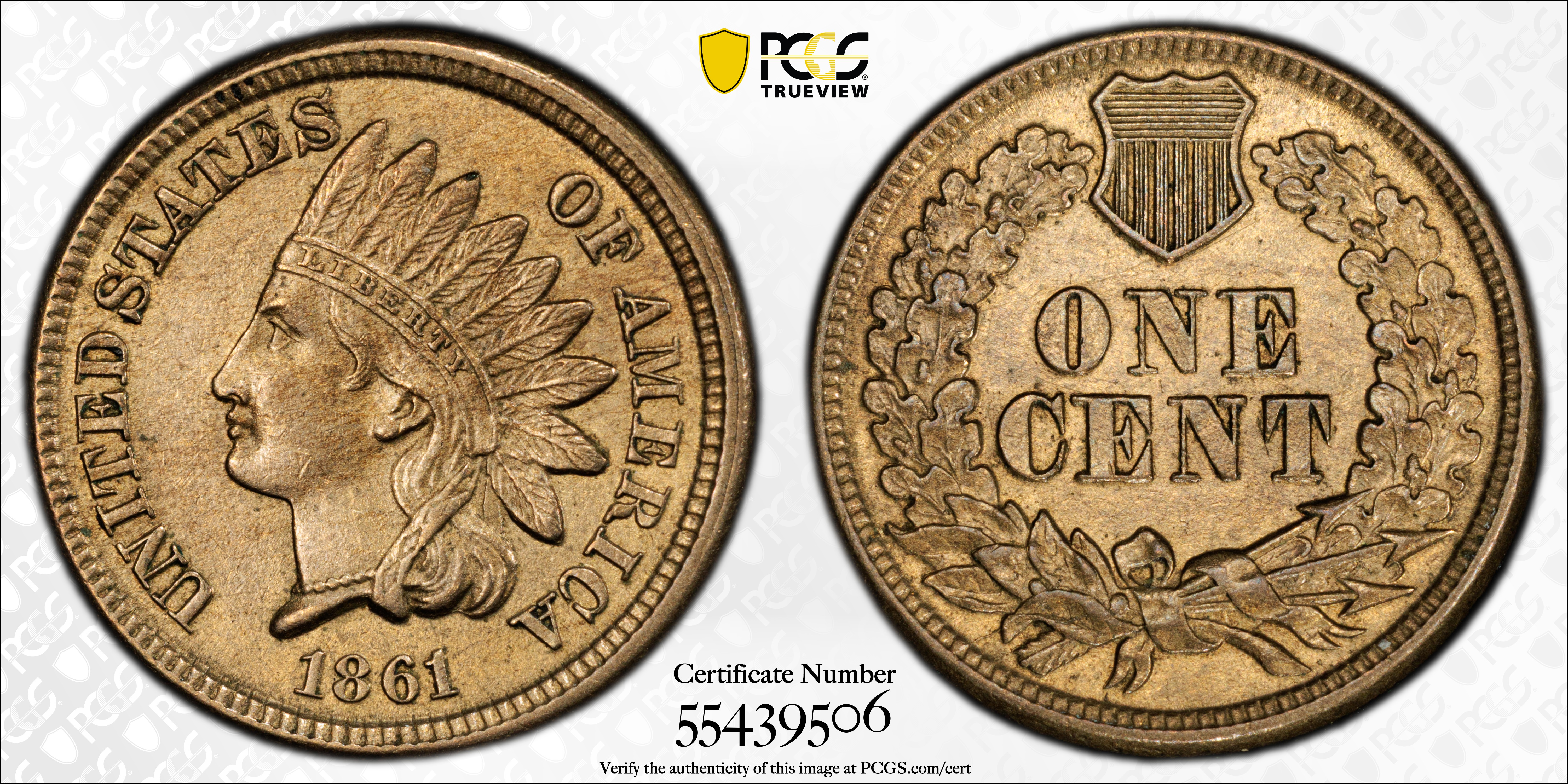 1861 1C AU58 Certification #55439506, PCGS #2061
