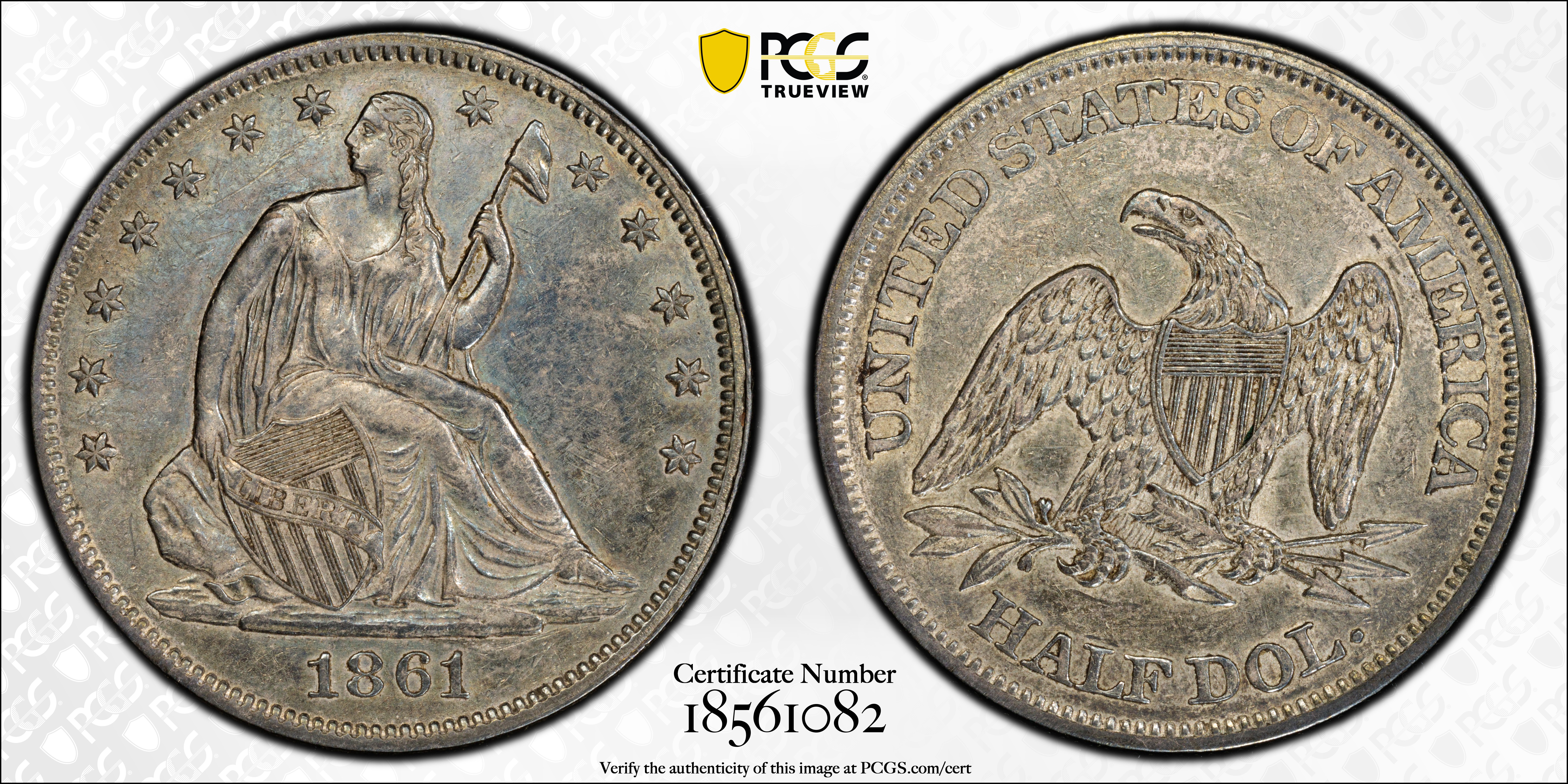 1861 50C AU50 Certification #18561082, PCGS #6302