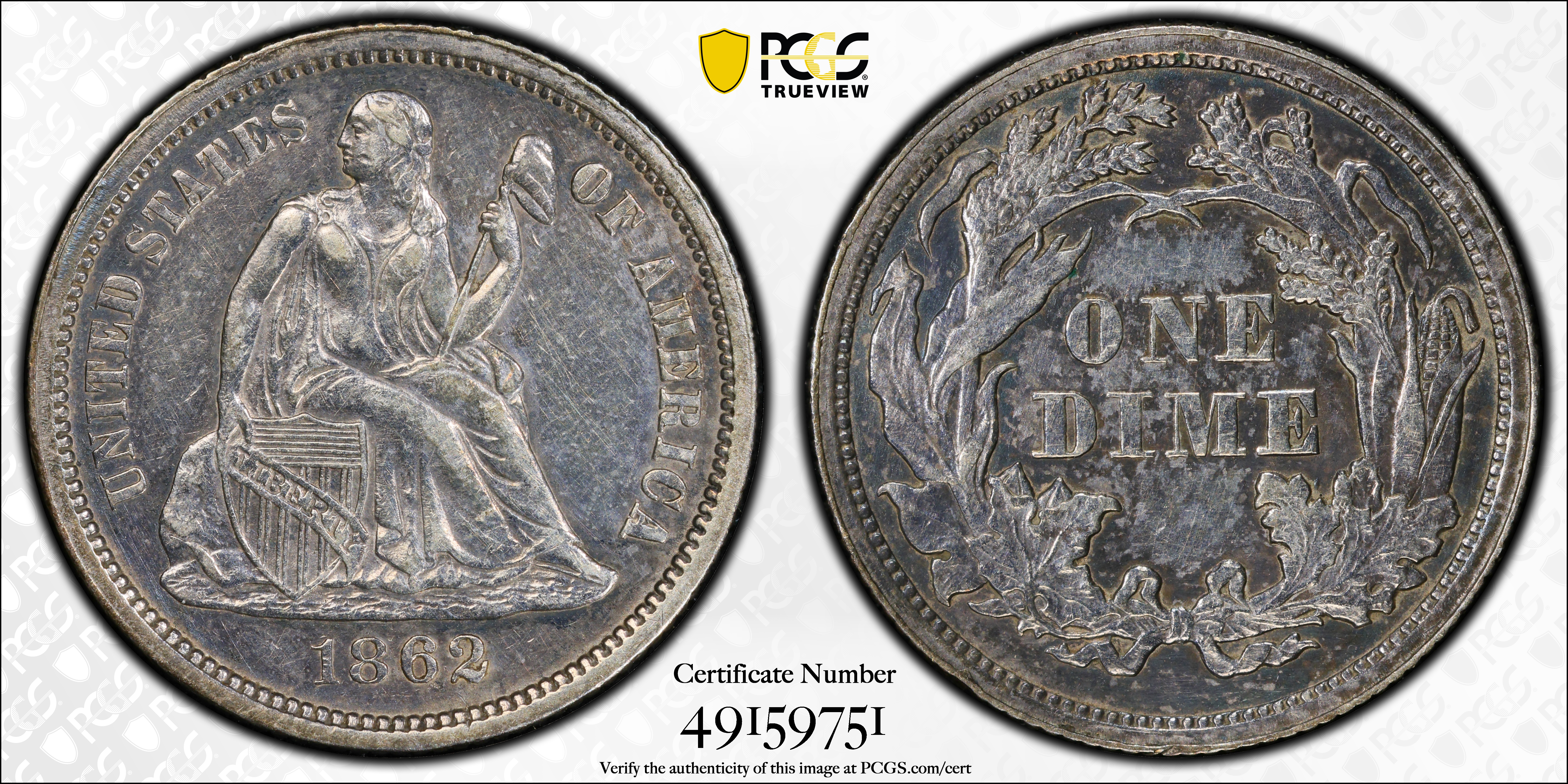 1862 10C PR55 Certification #49159751, PCGS #4755