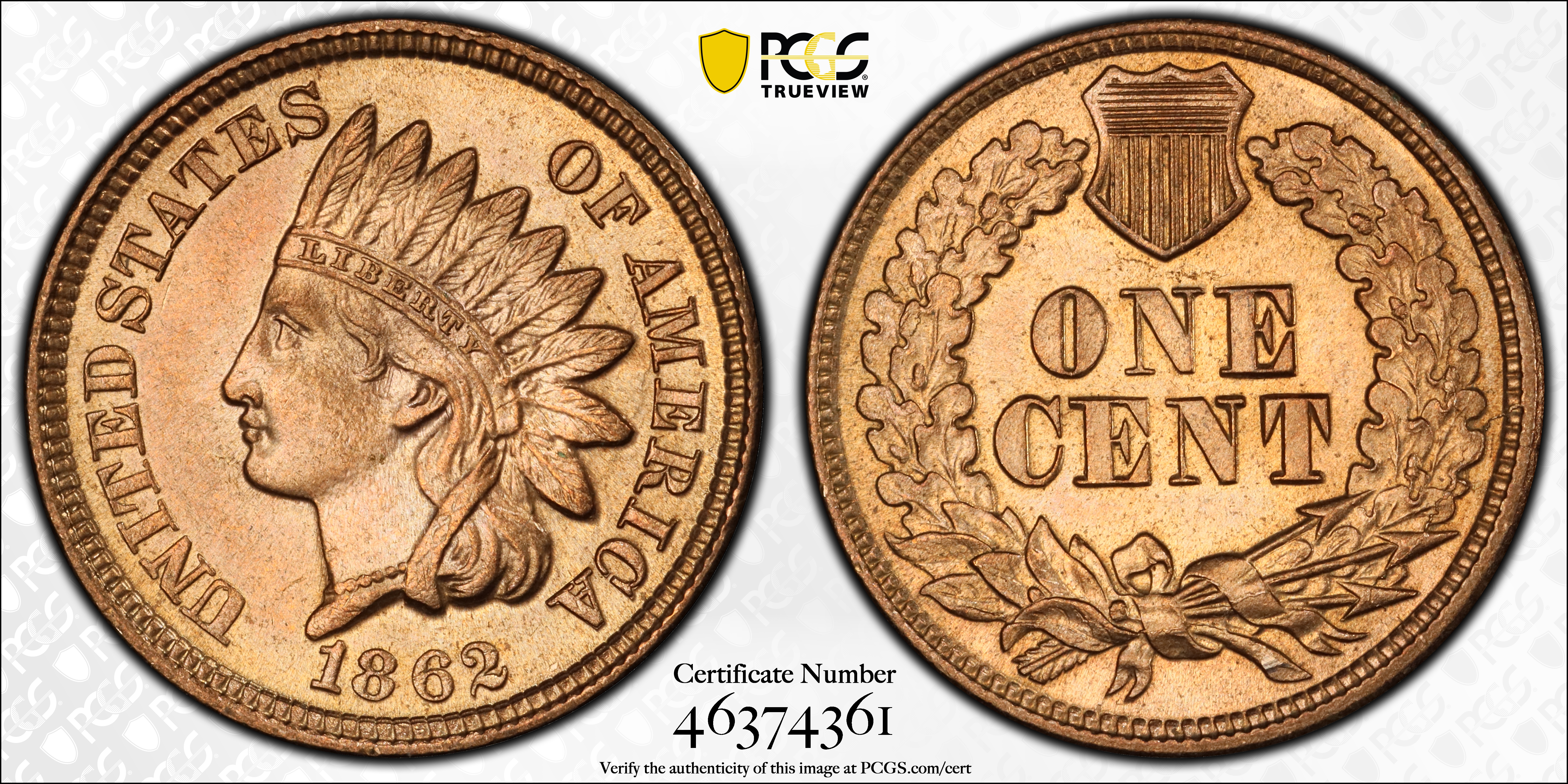 1862 1C MS65 Certification #46374361, PCGS #2064