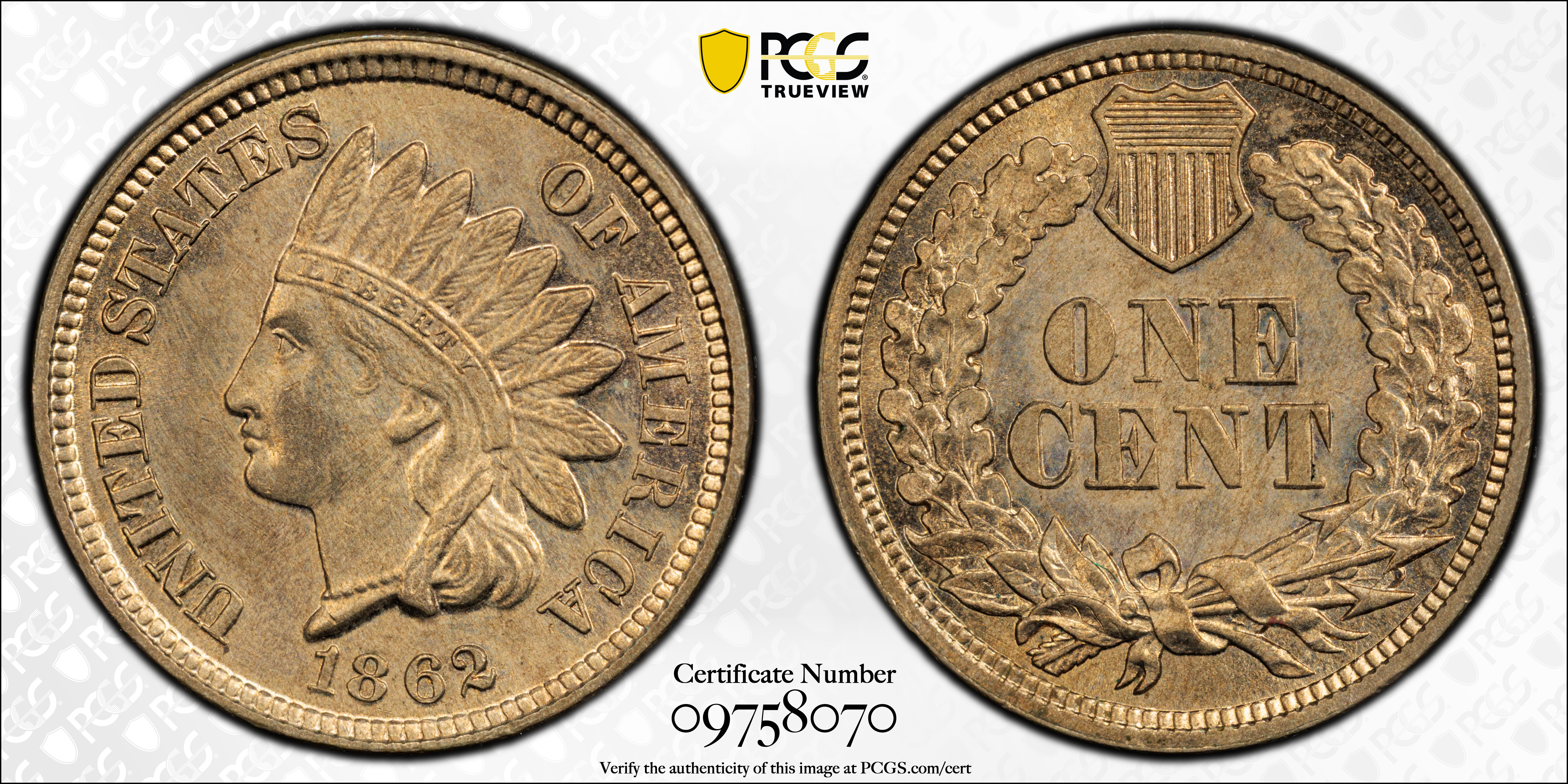 1862 1C MS65 Certification #09758070, PCGS #2064