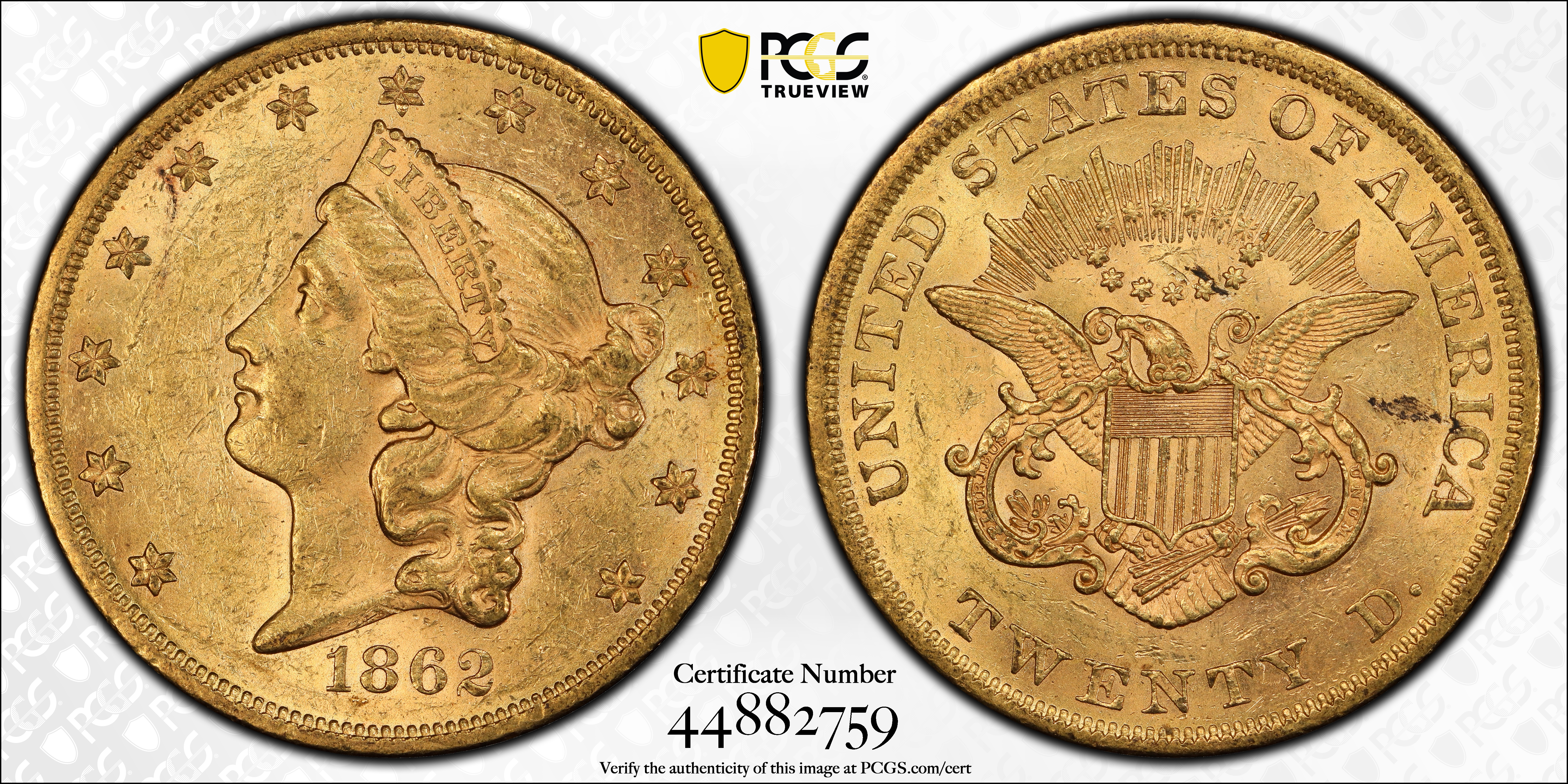 1862 $20 MS61 Certification #44882759, PCGS #8937