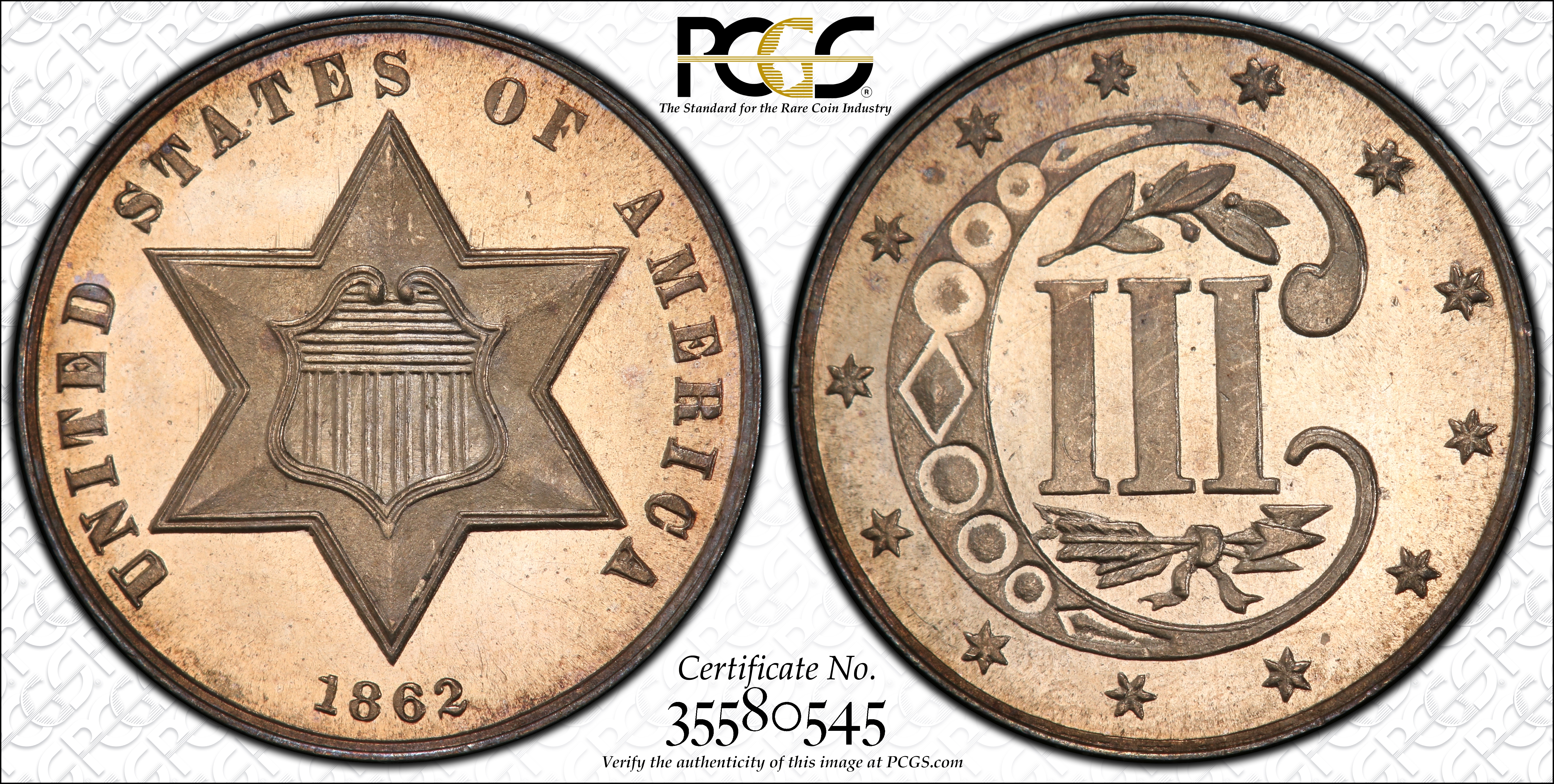 1862 3CS, CAM PR66CAM Certification #35580545, PCGS #83711