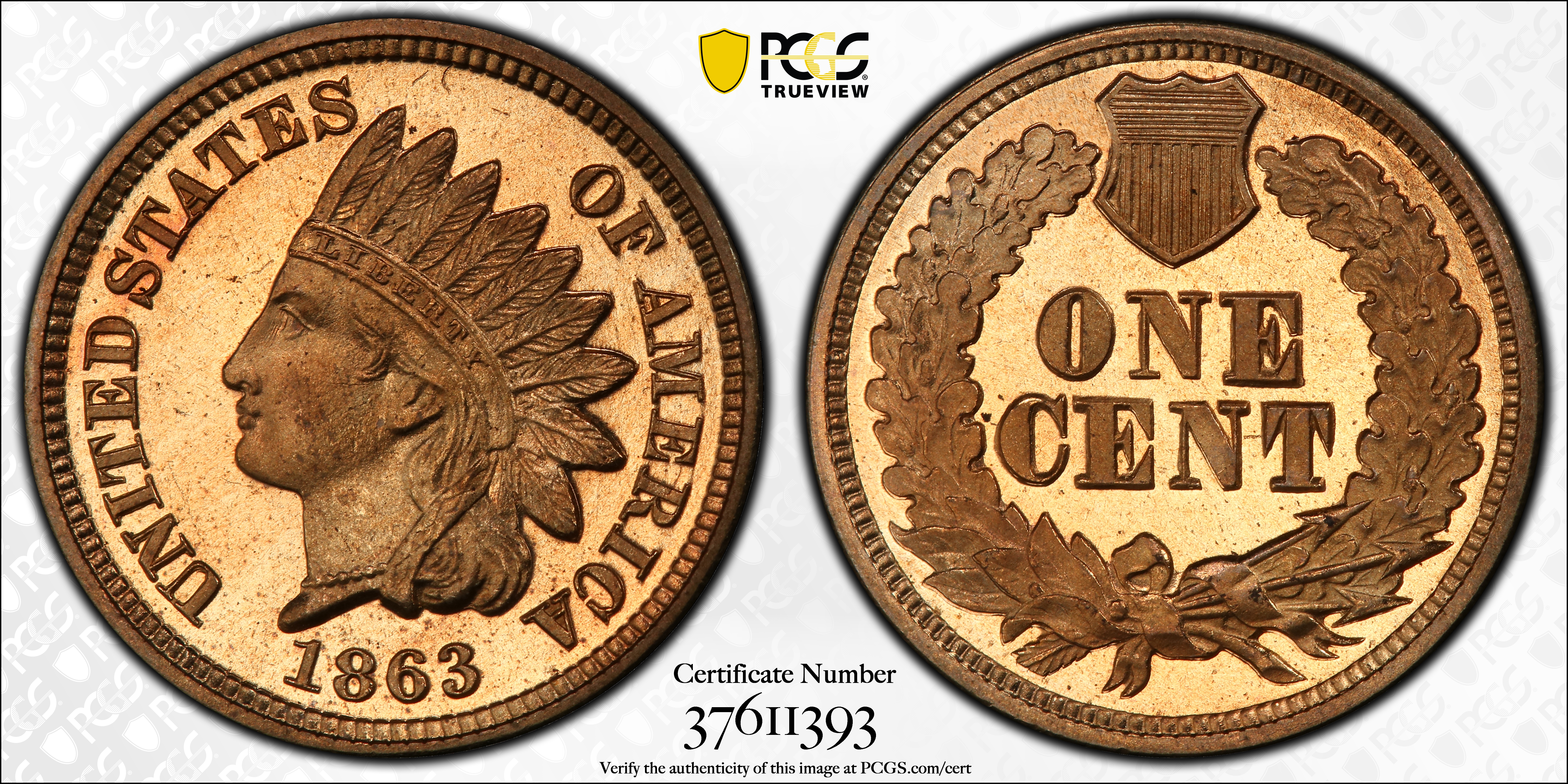 1863 1C, CAM PR66CAM Certification #37611393, PCGS #82262