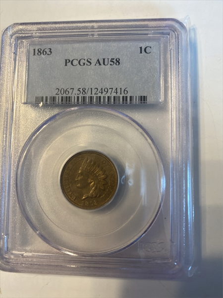 1863 1C AU58 Certification #12497416, PCGS #2067