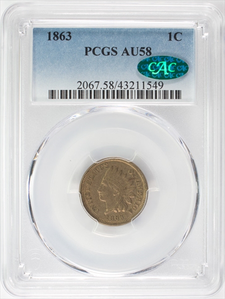 1863 1C AU58 Certification #43211549, PCGS #2067