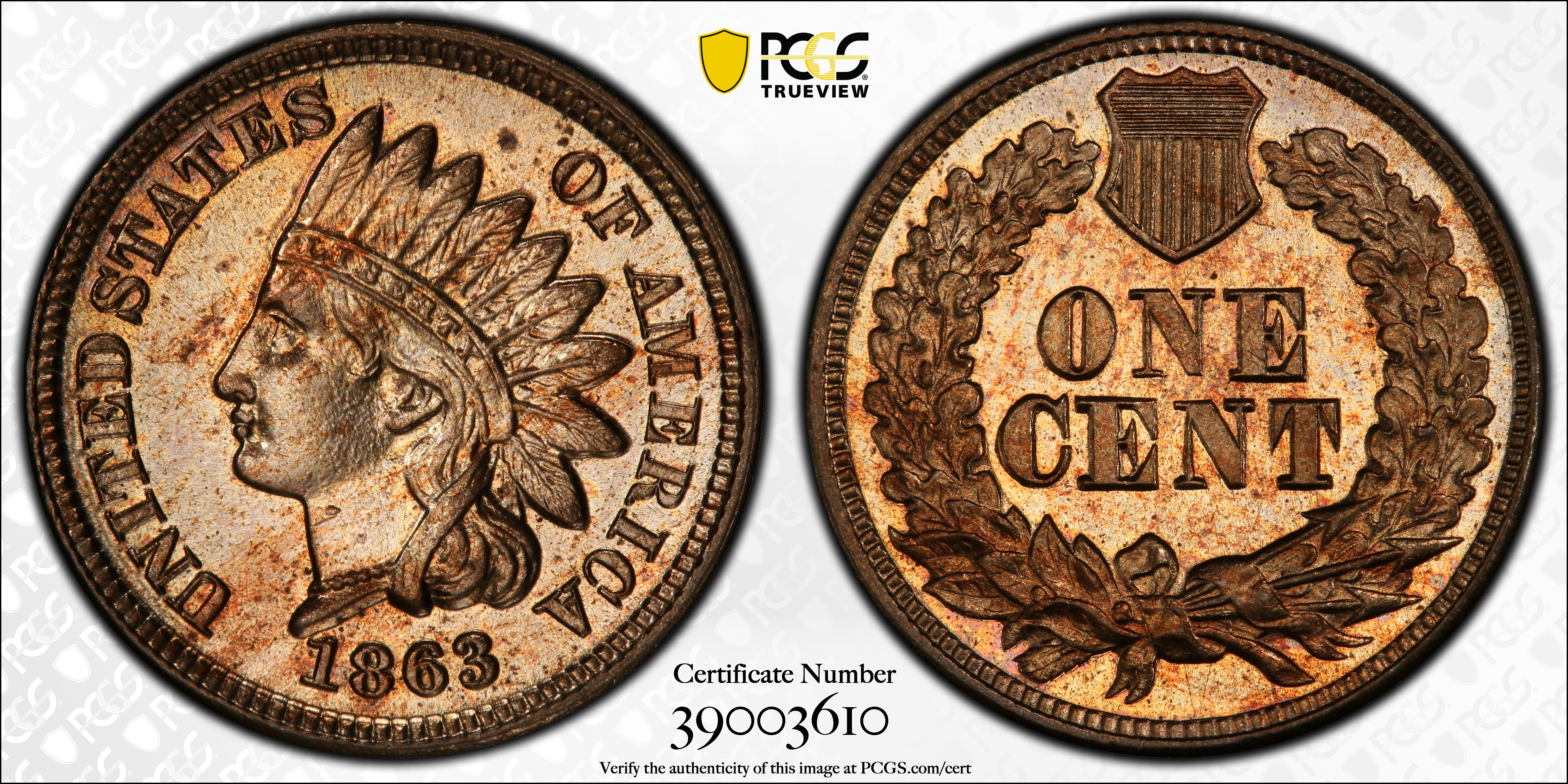1863 1C MS64 Certification #39003610, PCGS #2067