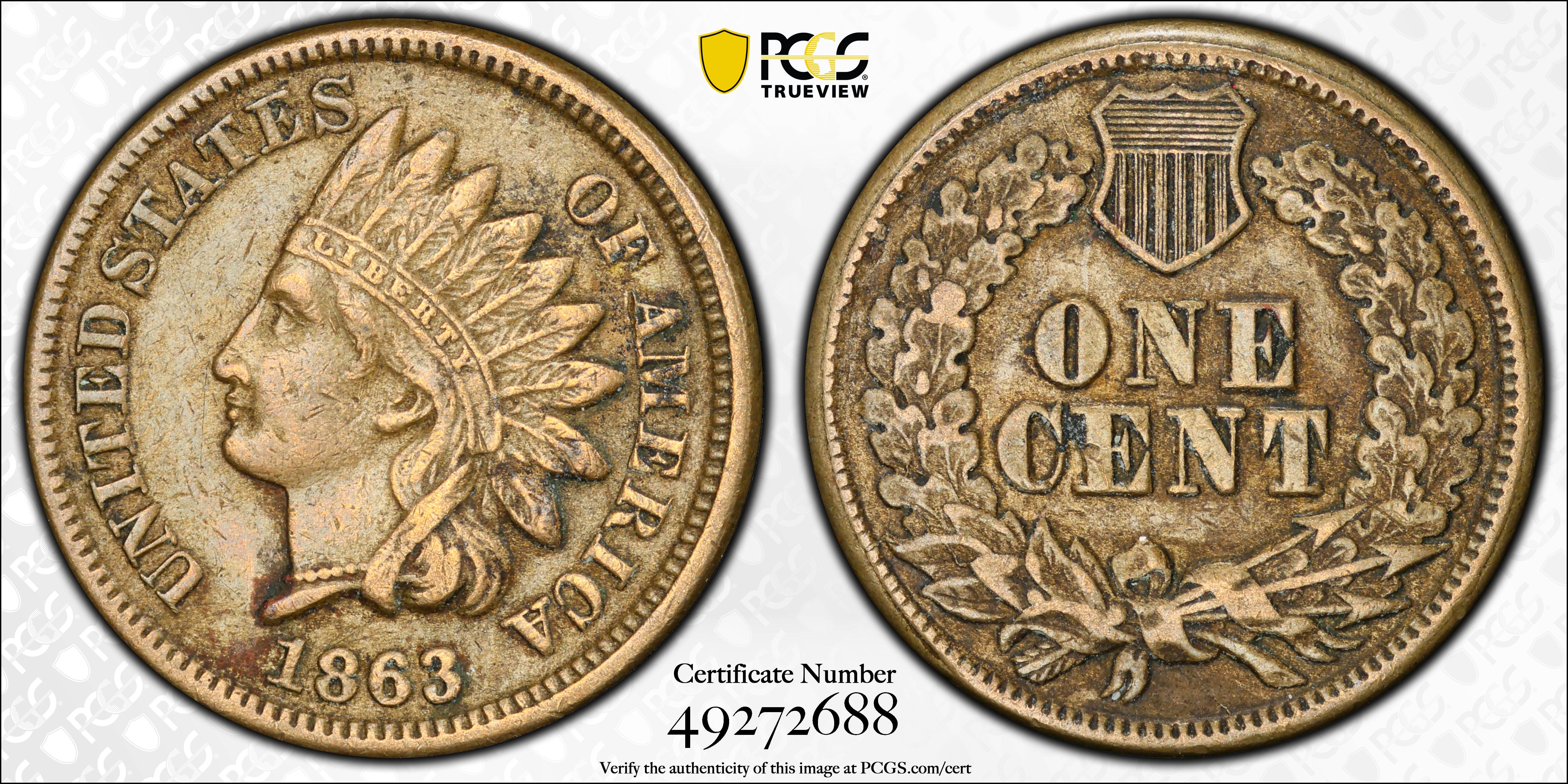 1863 1C XF40 Certification #49272688, PCGS #2067