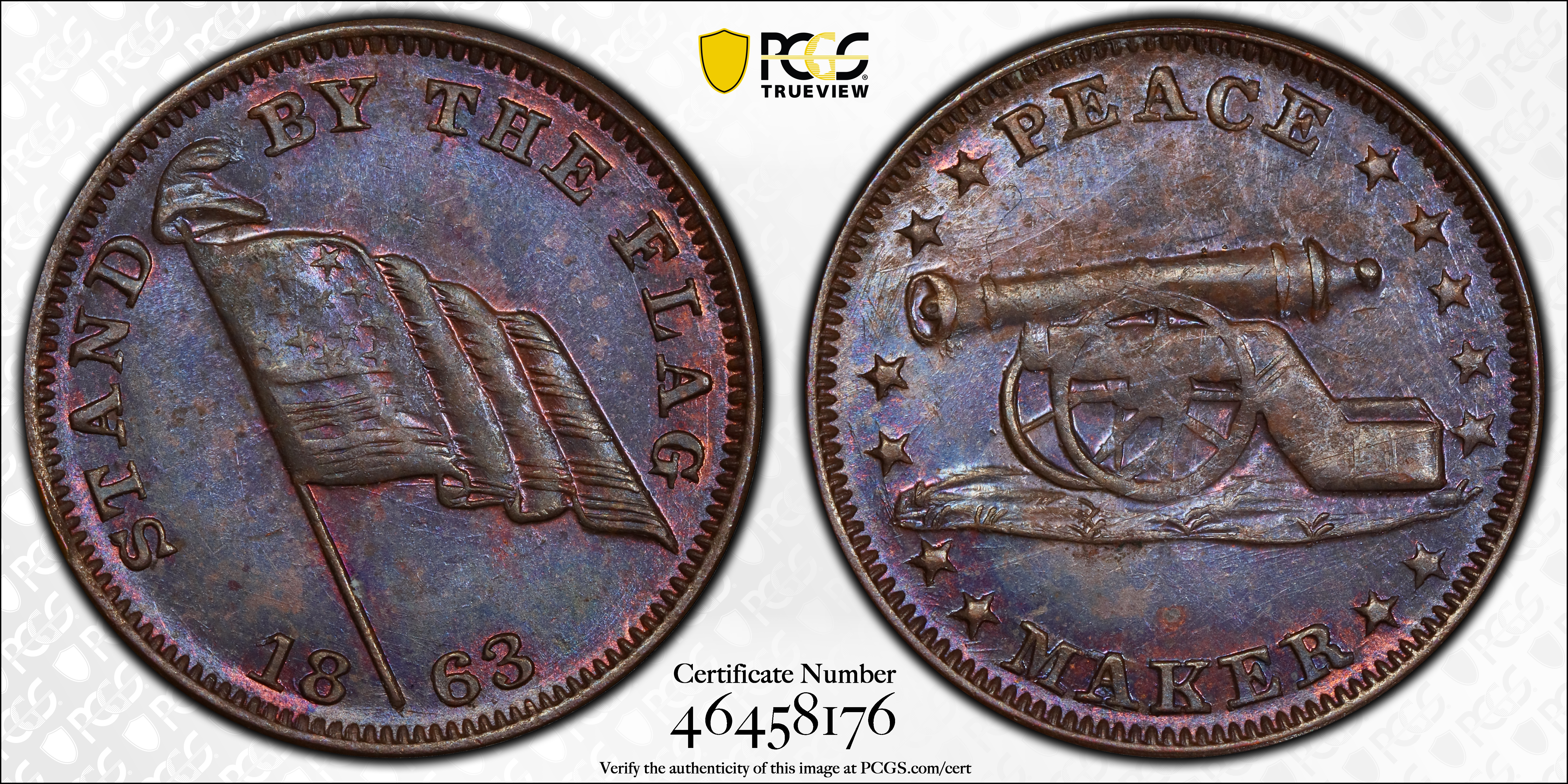 1863 CWT F-169/213a, Peace Maker, BN MS62BN Certification #46458176, PCGS #603912