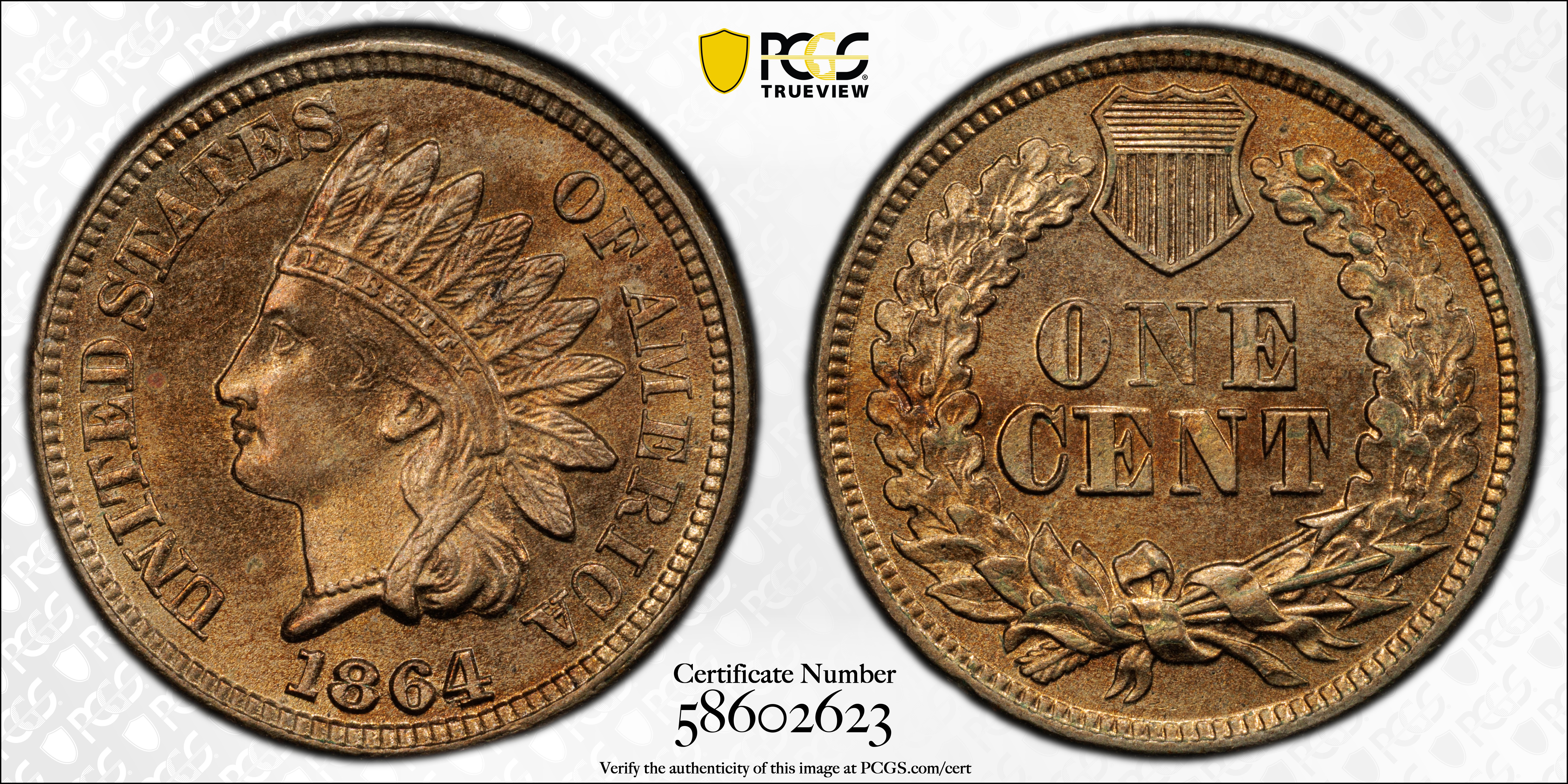 1864 1C Copper-Nickel MS64 Certification #58602623, PCGS #2070