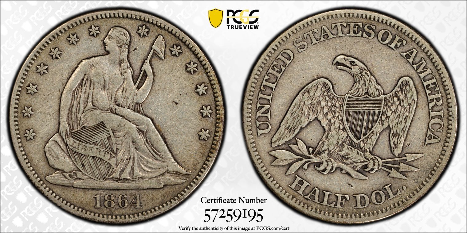 1864 50C VF30 Certification #57259195, PCGS #6311