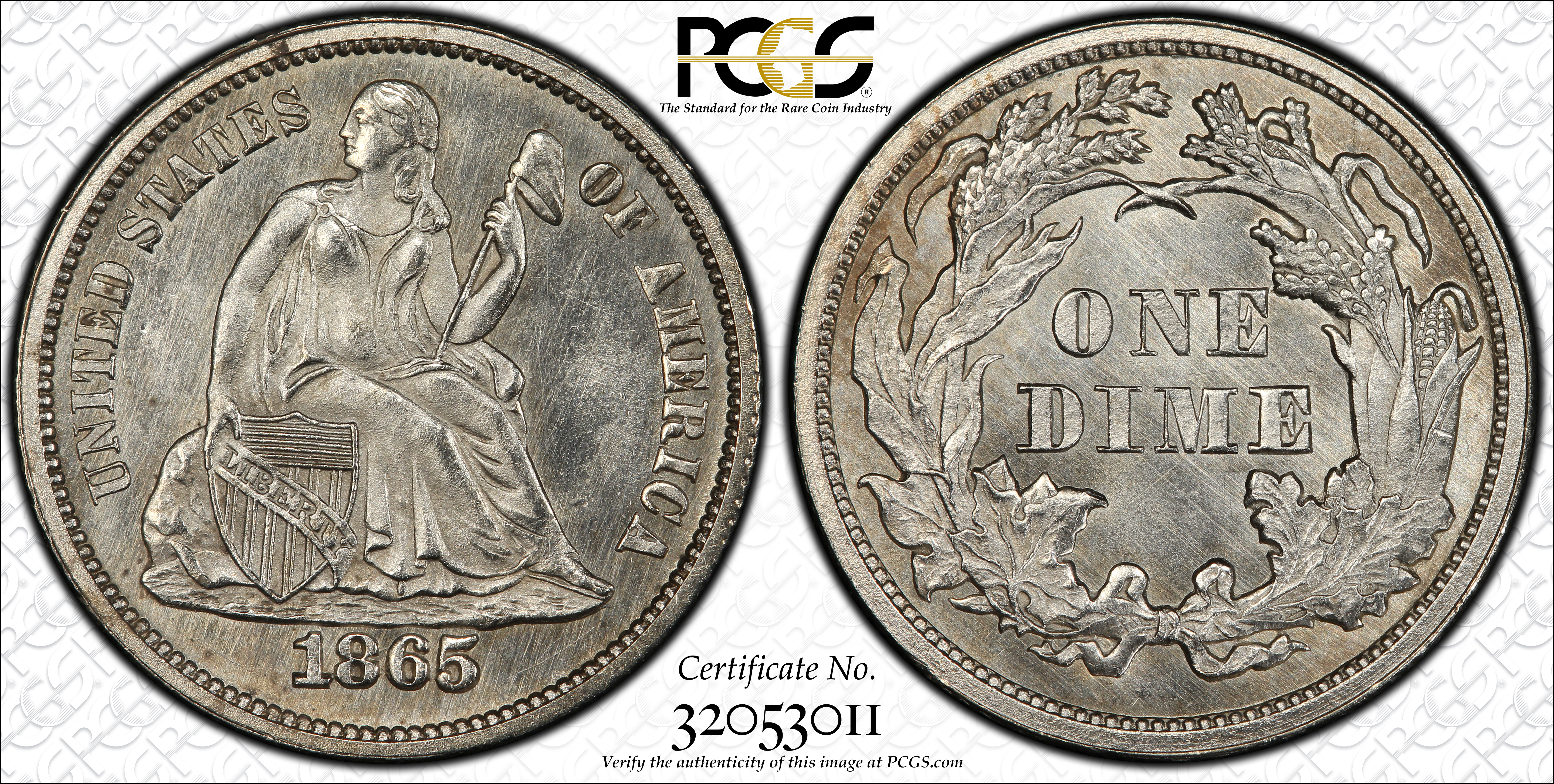 1865 10C MS64 Certification #32053011, PCGS #4641