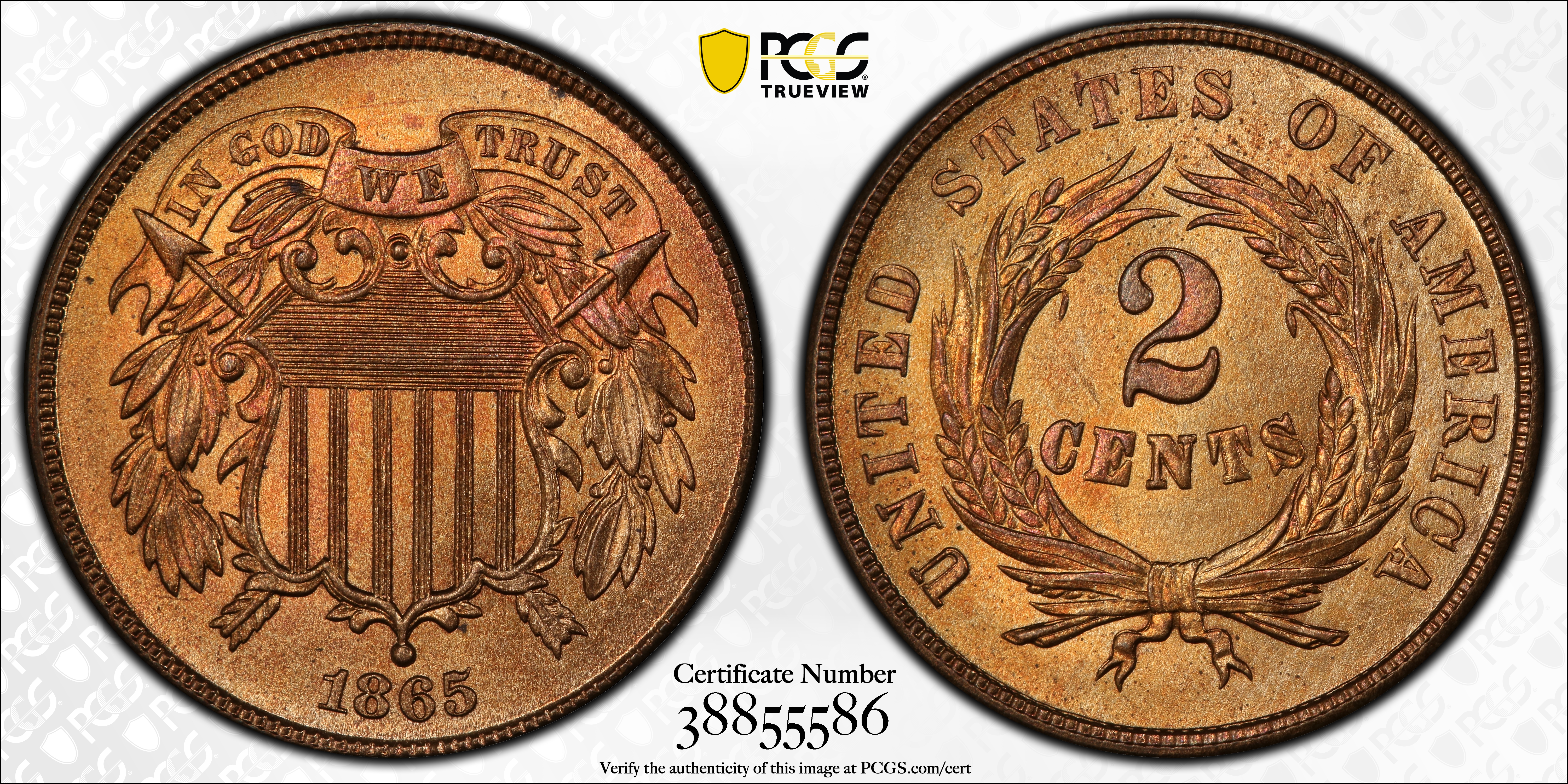 1865 2C, RD MS66+ RD Certification #38855586, PCGS #3584