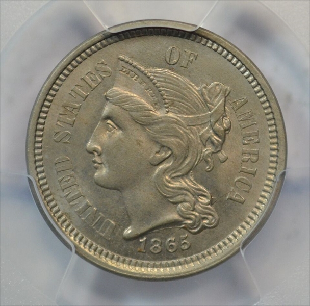 1865 3CN MS64 Certification #50585605, PCGS #3731