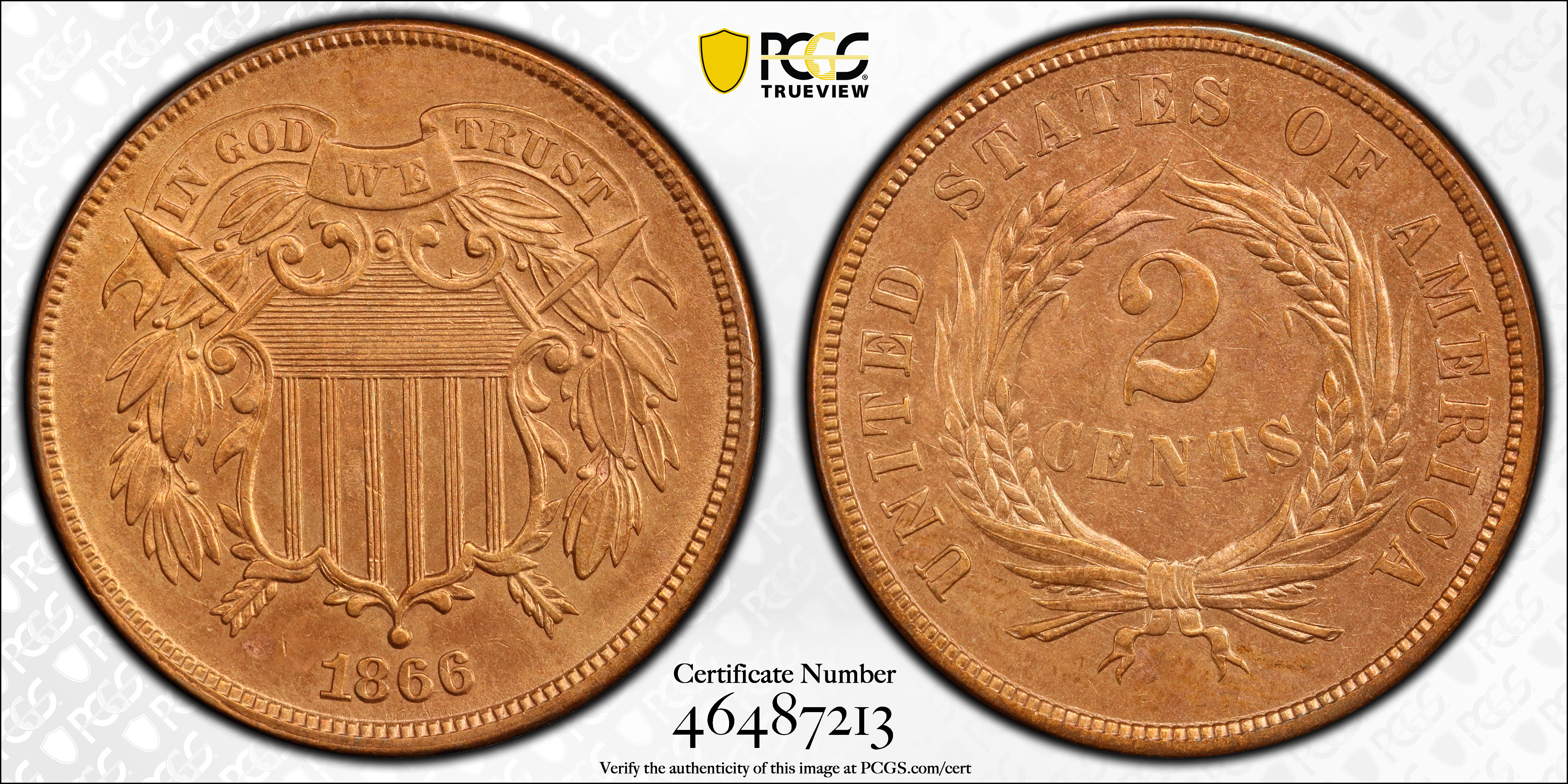 In terms of overall mintage, the 1866 Two Cent piece is the third most common date of the series.